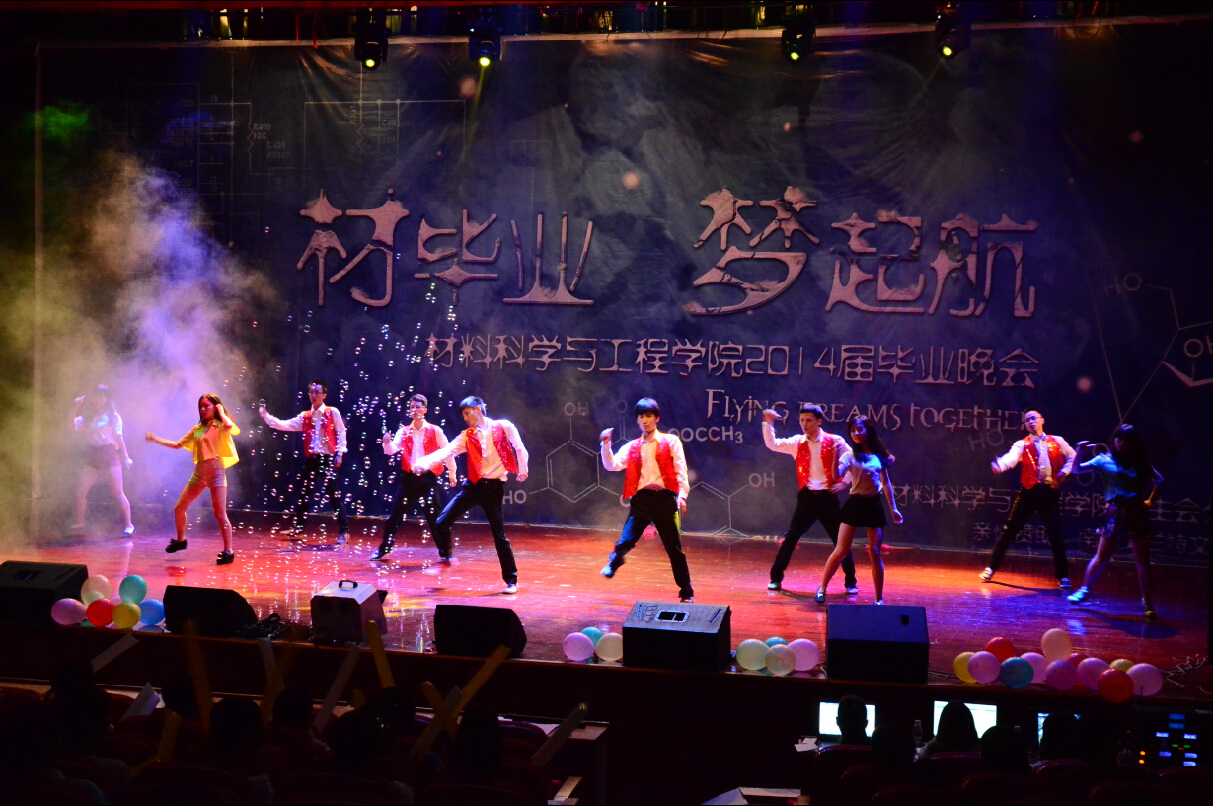 毕业典礼之后,材料院全体毕业生与教师在青春剧场举办了“材毕业、梦起航”毕业晚会,无论是大四学生合唱的《光阴的故事》、还是李兴鳌书记等老师朗诵的《一起走过》、汪联辉院长等演唱的闽南歌《爱拼才会赢》都体现着材料院师生深厚的情谊。前来参加“2011计划协同创新会议”的京东方科技集团股份有限公司执行副总裁董友梅女士送出的2台55寸电视更是将晚会气氛推向了高潮。
