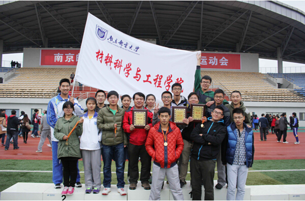 本科生组成了代表学院含义的字母“IAM”,研究生组拉出了横幅“鏖战科技前沿,让材料发光发亮”、“热拼青春赛场,看南邮超凡超赞”,老师们拉出了横幅“真材实料,邮子之骄”,展示了学院“化学学科”、“材料学科”双双进入ESI学科排名全球前1%的雄心与努力。并且在之后的广播操比赛中,太阳城娱乐在线真人视讯平台