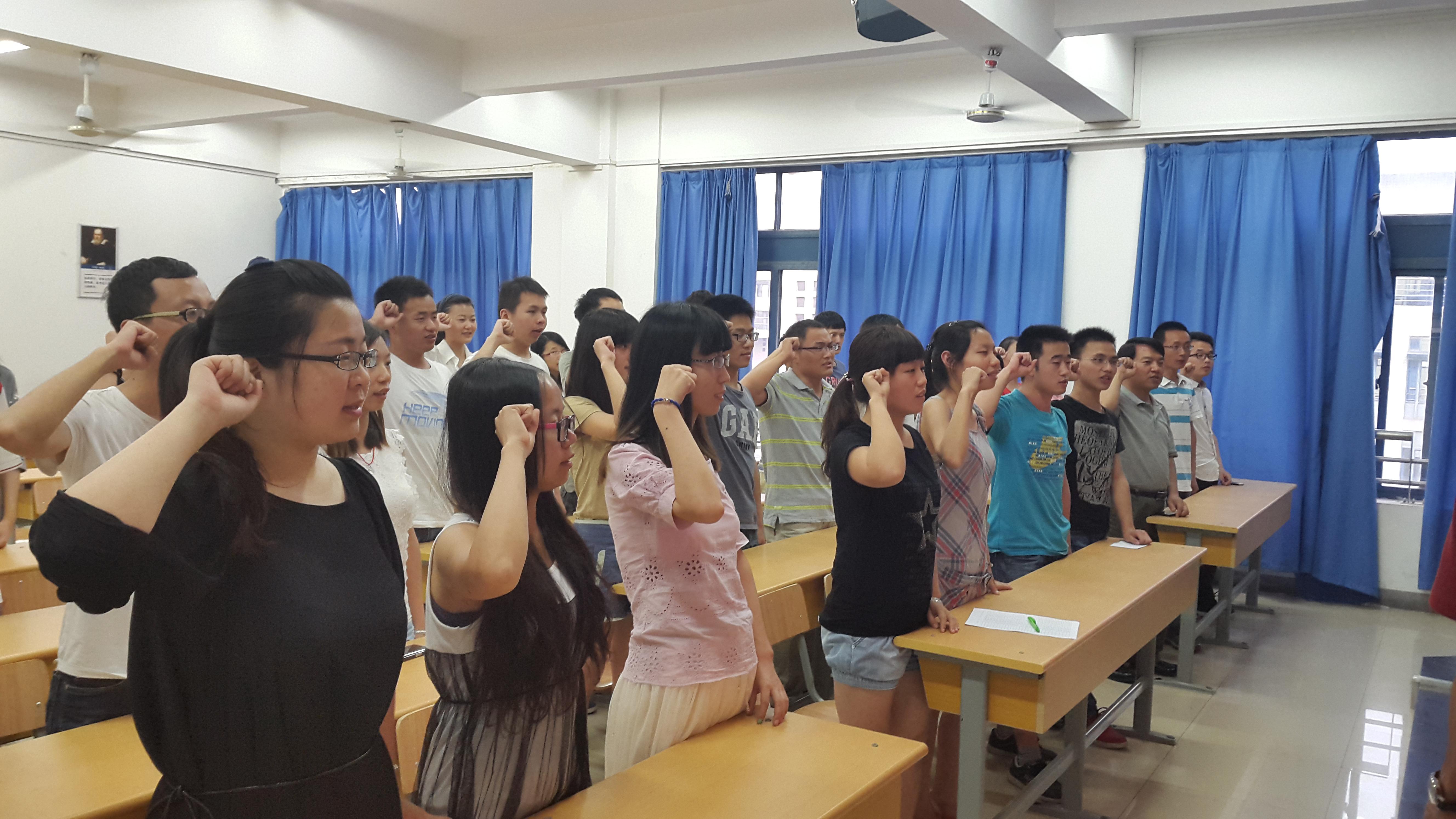 为了切实加强毕业生党员教育,提高毕业生党员的党性修养,激励毕业生党员在文明离校工作中充分发挥模范带头作用。6月10日,太阳城娱乐 在教3-404教室举行了2014届毕业生党员再教育暨重温入党誓词主题活动。参加人员有院党委副书记于景宝老师,院组织干事、2010级辅导员刘颖老师及2010级本科生支部全体党员。