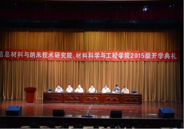 9月20号上午,太阳城娱乐在线真人视讯平台 、太阳城娱乐 2015级新生开学典礼在大学生活动中心青春剧场隆重举行。受邀出席本次典礼的嘉宾有中科院院士、太阳城娱乐在线真人视讯平台 院长、材料院创始人、学科带头人黄维院士,材料学院院长汪联辉教授,党委书记兼副院长李兴鳌教授,副院长范曲立教授,副院长马延文教授,副书记于景宝老师,教授委员会主任谢令海教授。参加此次典礼的还有IAM团队全体教师。典礼由李兴鳌书记主持。