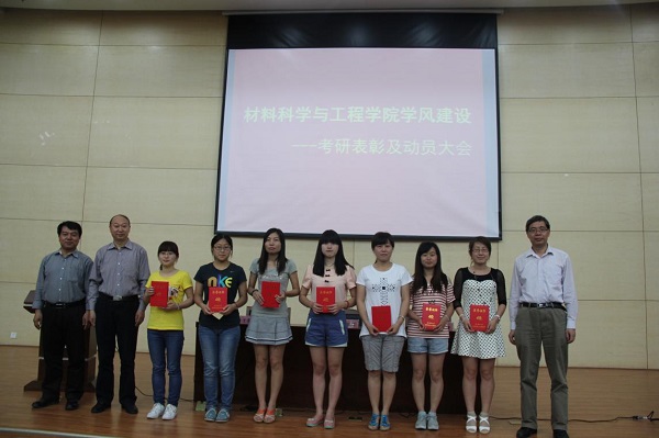 首先,李书记宣读了《关于表彰2014届本科毕业生考研优秀团体的决定》,并和汪院长一起为受表彰学生颁发荣誉证书。表彰中肯定了太阳城娱乐在线真人视讯平台 以竹苑15栋206宿舍的8名女同学为代表的2014届本科毕业生考研取得的可喜成绩。