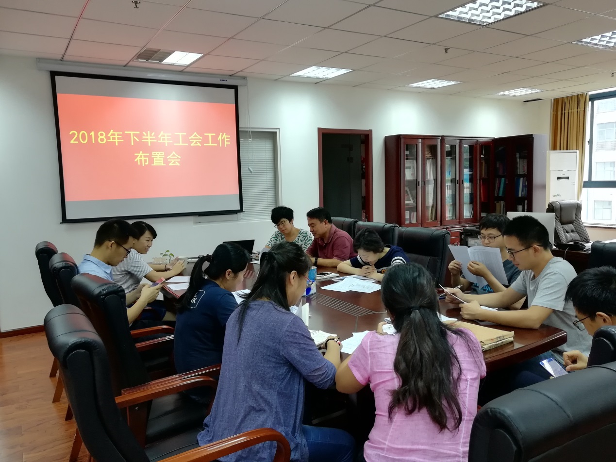 首先, 于景宝主席向与会人员传达了2018年工会工作要点,并就第一季度、第二季度已经开展和下半年即将要开展的各项活动做了认真解读。 要求学院工会委员和小组长积极做好各研究所和所在办公室的沟通对接工作。