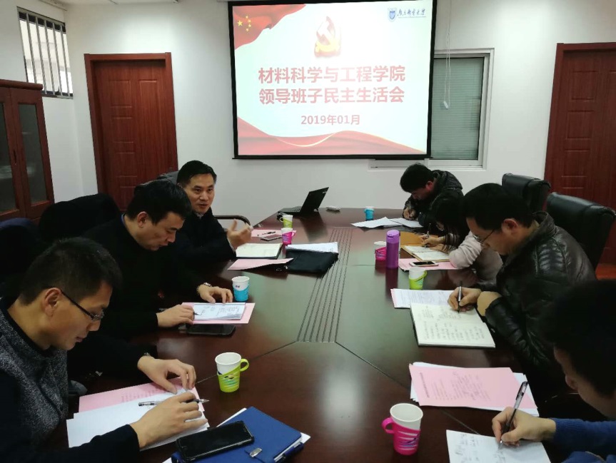 会议最后,蒋国平副校长对本次民主生活会进行了点评。首先对材料学院领导班子2018年工作给予肯定,学院在科学研究、人才称号方面均有重大突破。其次,对于班子成员对照批评时候提出的研究生生源吸引、学生管理、教学投入等方面的问题,也结合自己的分管工作给予了细致的指导。蒋校长希望学院领导班子在2019年加强领导班子建设和教师思想政治教育,统一思想、凝心聚力,学科建设不松懈、重点实验室申报有突破、重大项目有提升,为学校一流学科的验收和保持更好地贡献学院的力量。