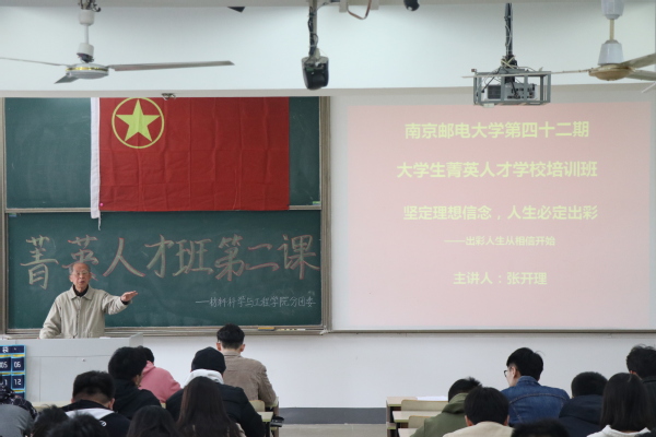 3月24日晚6点半,南京邮电大学第四十二期菁英人才培训班第二课在教2-208正式开课。本次课堂以“坚定理想信念,人生必定精彩——出彩人生,从相信开始”为主题,主讲人张开理老师围绕着理想和信念这一话题,通过引举具体事例,鼓励当代青年学生要坚定信念,相信自己,从而成为一名合格的、符合当代潮流的优秀大学生。