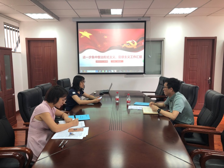 6月11日下午,校纪委副书记、纪委办公室主任、监察处处长安建强来到材料学院,就进一步集中整治形式主义、官僚主义工作进行专项督调研。学院党委书记赵允玉向安建强副书记专题汇报了学院集中整治形式主义、官僚主义的各项工作开展情况。学院党委重点围绕整改方案梳理出的五个方面15条重点整改问题开展,已经整改落实13条。赵允玉书记还就整治工作的薄弱环节、未整改到位的原因及下一步工作打算方面做了详细汇报。