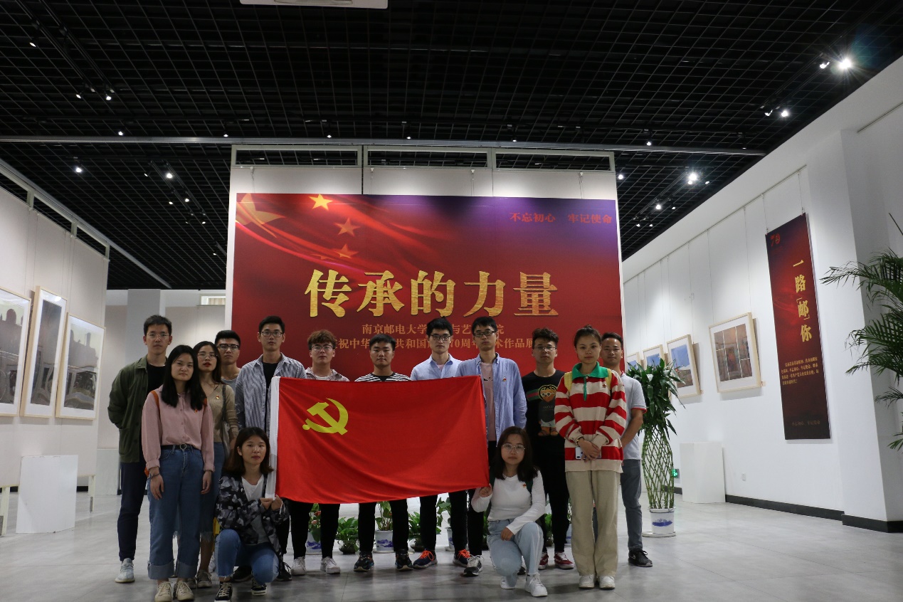 2019年9月19日,南京邮电大学传媒与艺术学院举办的“传承的力量——传媒与艺术学院庆祝中华人民共和国成立70周年师生艺术作品展”在文科楼一楼展厅正式开展。为弘扬崇高革命精神,传承南邮红色基因,9月26日中午,太阳城娱乐 2019级研究生党支部党员研究生一同前往参观。