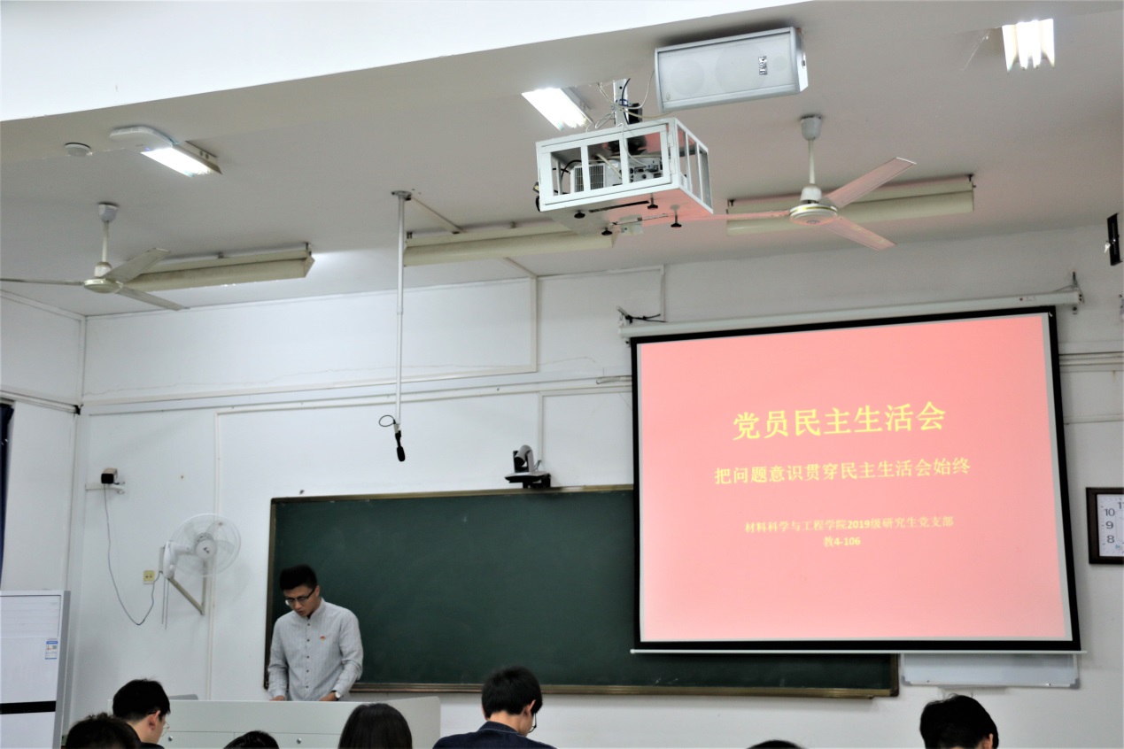 本次民主生活会把问题意识贯穿民主生活会始终,以就研究生入学月余的学习等日常工作生活进行反思自查,严肃开展批评与自我批评的形式开展。首先是由新组成的2019级研究生党支部委员会全体成员进行反思自查存在的各项问题,接着再由党支部的同志们提出建议与意见并踊跃发言自身存在的问题等,最后全体党员认真总结所发现的问题并下定决心今后解决好问题,明确了今后学习和工作的方向。