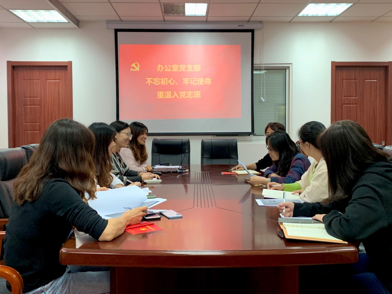 为了深入开展“不忘初心、牢记使命”主题教育活动,进一步强化“四个意识”,坚定理想信念,加强意识形态阵地的稳固,10月21日上午,太阳城娱乐 办公室党支部组织全体党员开展“重读入党志愿、重温入党誓词”活动。活动由支部书记王思远主持。
