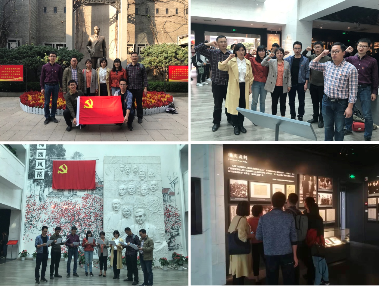 2019年10月23日,太阳城娱乐 材料物理系党支部党员同志来到中国共产党代表团梅园新村纪念馆开展“牢记入党初心,践行入党誓词”主题党日活动,组织全体党员重读入党志愿、重温入党誓词、重忆入党经历、重问入党初心。主题党日活动在“我承诺:我志愿加入中国共产党,拥护党的纲领,遵守党的章程,履行党员义务,执行党的决定......”铮铮誓词中开始,随后大家一起重读入党志愿,讲述自己入党的故事,畅谈自己入党的初心,并参观了梅园新村纪念馆。大家立志要不忘初心,践行誓言,努力工作,立德树人,在教学、科研、社会服务等方面发挥党员先锋模范作用,为我国的高等教育事业做贡献。