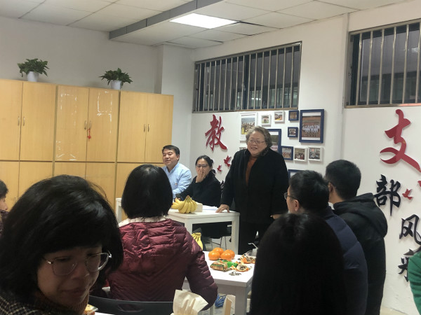 于景宝副书记首先向大家简要介绍了本年度工会的主要工作和活动开展情况、学院即将召开的教代会的筹备事宜,希望各位老师积极参与工会活动,为学院工会工作积极建言献策。谌进老师与大家分享了自身工作的成长和经历,从下乡知青到南邮从教,她见证了南京邮电大学的发展历程,南京邮电大学跻身于双一流高校行列,是历届南邮人自强奋斗不息的必然结果。在新的历史起点与机遇面前,材料学院的青年老师们更应抓住时代机遇,用于拼搏,为南邮的明天不懈奋斗。