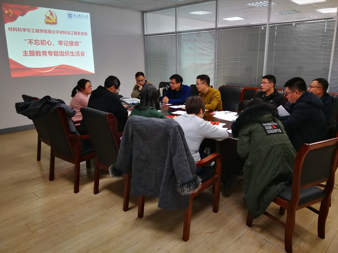 按照学校“不忘初心、牢记使命”主题教育工作部署,结合《太阳城娱乐 党委“不忘初心、牢记使命”主题教育专题组织生活会实施方案》的通知要求,12月9日下午,太阳城娱乐 高分子材料与工程系党支部召开专题组织生活会,会议由党委委员、支部书记黄艳琴主持。