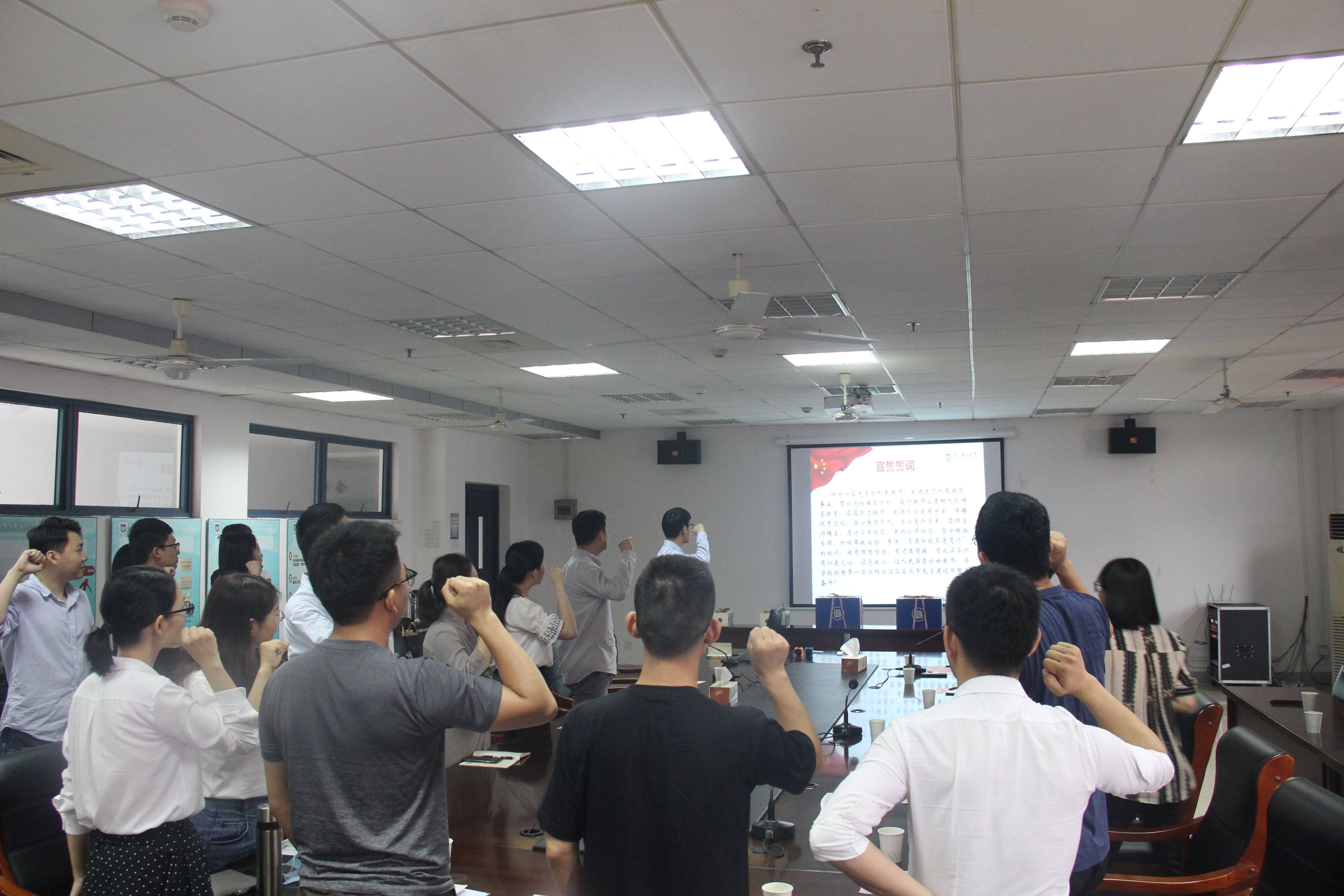 学院党委副书记、分工会主席于景宝首先向大家介绍了出席本次仪式的各位领导及关工委委员并致辞。新入职教师尹超作为教师代表致辞,回顾了曾经在材料院的求学时光,并展望了未来的职业生涯。所有新老教师在凌海峰老师的带领下进行了庄严的教师宣誓,来自关工委的谌进和倪静虹老师与大家分享了自身工作的成长和经历,两位老师都在南邮工作四十余年,见证了南京邮电大学的发展历程,对材料学院的青年老师们提出了真切的期许,希望青年老师们抓住时代机遇,勇于拼搏,为学校更加辉煌的明天不懈奋斗。