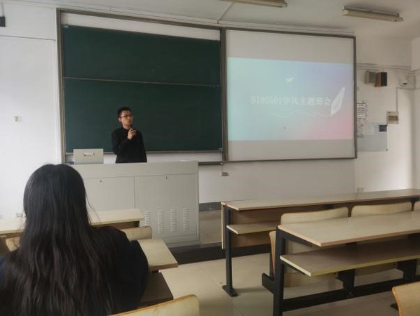 班会开始,首先由班长王子彤同学为大家汇报了开学以来的工作情况和班级情况,呼吁大家积极配合班委工作,完成班级相关事务,并且动员所有人积极学习,完成学业的同时努力考研,为自己的未来规划蓝图。随后B180501班的团支书黄威同学汇报了团支部的工作情况,鼓励大家参与团支部活动,做一个优秀共青团团员,积极向党组织靠拢。最后由太阳城娱乐 2018级辅导员陈骏向我们介绍了学院历年的毕业去向,沟通并了解了大家目前的想法与方向,鼓励班上同学尽早规划自己的职业生涯。