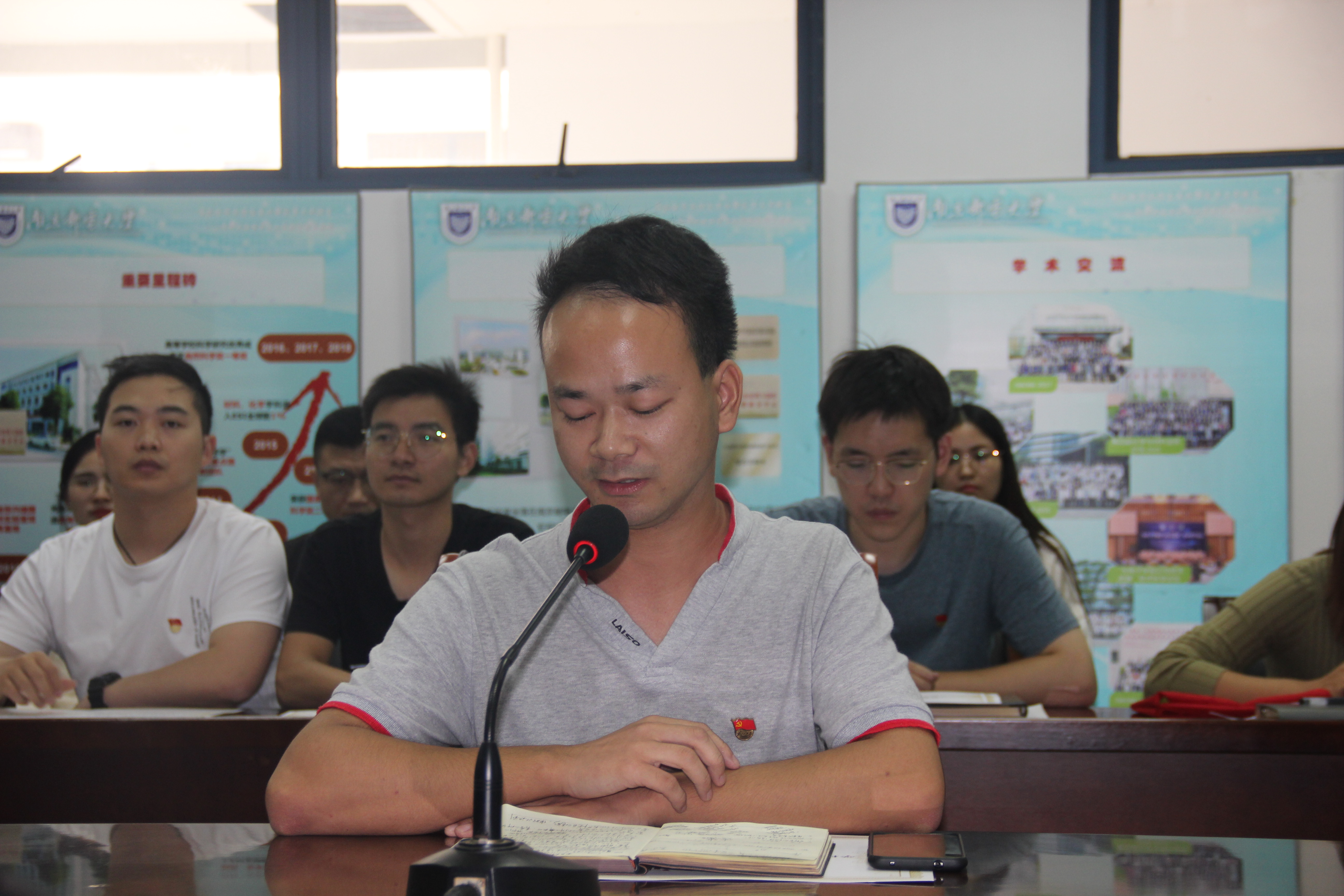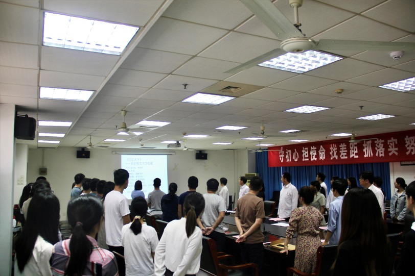 会议最后全体参会人员集体学唱校歌《信达天下》,赵允玉书记希望全体党员同志能够在学唱校歌的同时,感受校歌的精神内涵,传承南邮红色基因,努力奋斗,让南邮红色精神化于心、外化于行,并逐渐融入到今后的学习生活中去。