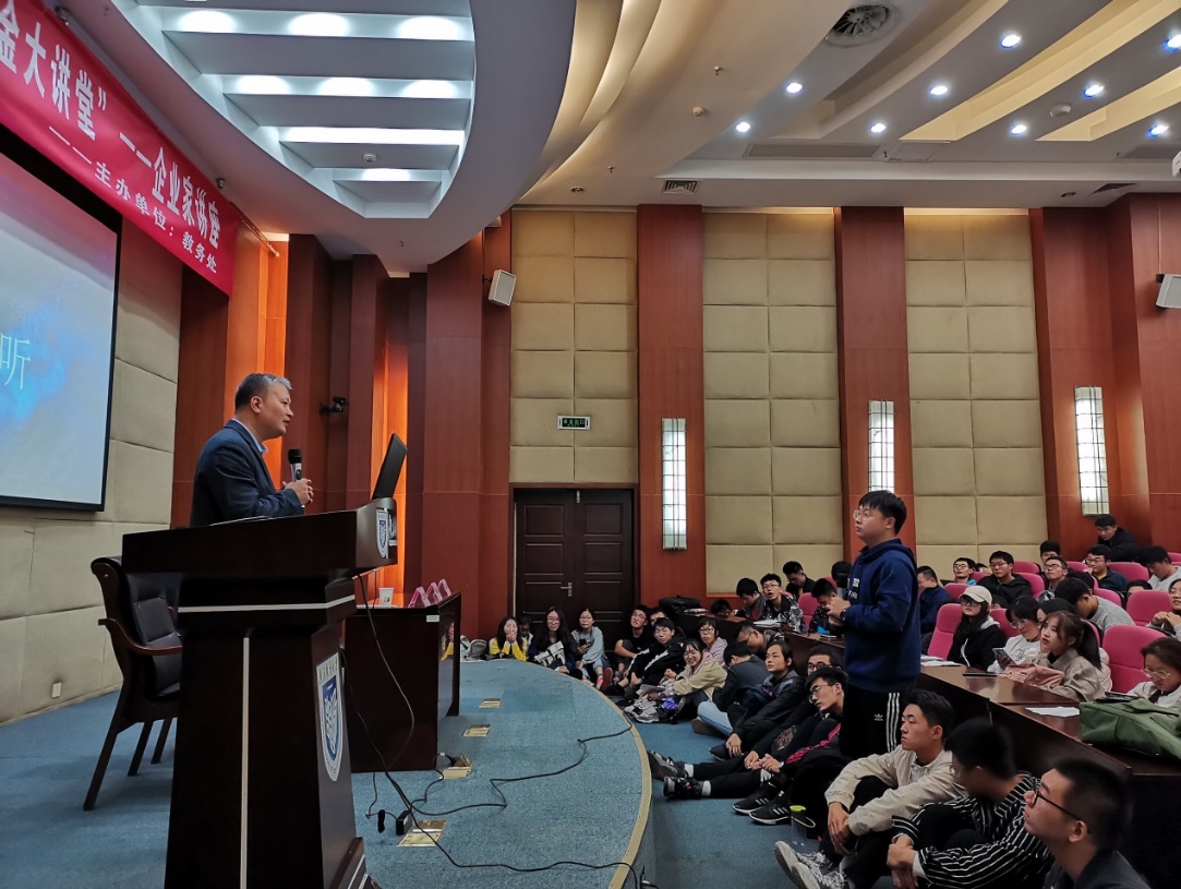 胡毓晓董事长从入局与破局、博弈与争锋、跨国并购、自主与创新、体会与建议五个方面为同学们做精彩报告。胡董事长首先介绍了在这个机会与挑战并存的时代,南极星从投资千万的小厂,到增资5000万扩建产能;从做分包商,到正式成为韩国LG在中国的唯一协力社;从技术勉强过关,到产品质量全面超越韩国企业;虽然起步和发力较晚,但是幸运的是赶上了这趟信息化产业的班车。世界贸易,有合作必有纷争,争必起于利。由于不熟悉文化和规则,中国企业在国际贸易争端中,经常处于下风,甚至完败。通过南极星与日本企业JUKI的国际诉讼案例,从先期的惨败,到后期的完胜,经过了熟悉文化、熟悉规则、掌握主动、赢得诉讼的艰难历程,启发中国企业在国际博弈中,必须积累实力,培养底气,掌握主动。胡董事长还分享了他们公司蚂蚁吞象的故事,讲述了南极星收购韩国智水企业的案例。南极星作为一个中国企业,并购智水企业,并通过加强管理,消化矛盾,解除危机,最终扭亏为盈,完成了被韩国企业界认为不可完成的奇迹。在报告中,胡董事长还指出了中国未来科技产业的出路。从国际合作和纷争的现实,未来技术发展有三个要点:一是顶尖的技术和团队是买不来的;二是必须进行自主创新,填补卡脖子技术;三是中国拥有基础研究和应用研发的良好条件和土壤。最后,胡董事长对在校大学生提出四个方面的建议:一是重视修养塑造,二是把握关键抉择,三是培养坚韧意志,四是养成豁达心态。