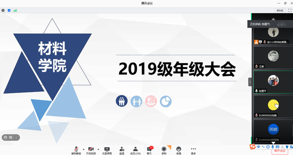 2020年9月3日17:30,太阳城娱乐 2019级本科生年级大会通过腾讯会议的方式在线上举行。本次会议由2019级辅导员赵赫男老师主持,学院党委副书记兼副院长张建平老师、2017级辅导员王森老师应邀出席会议。