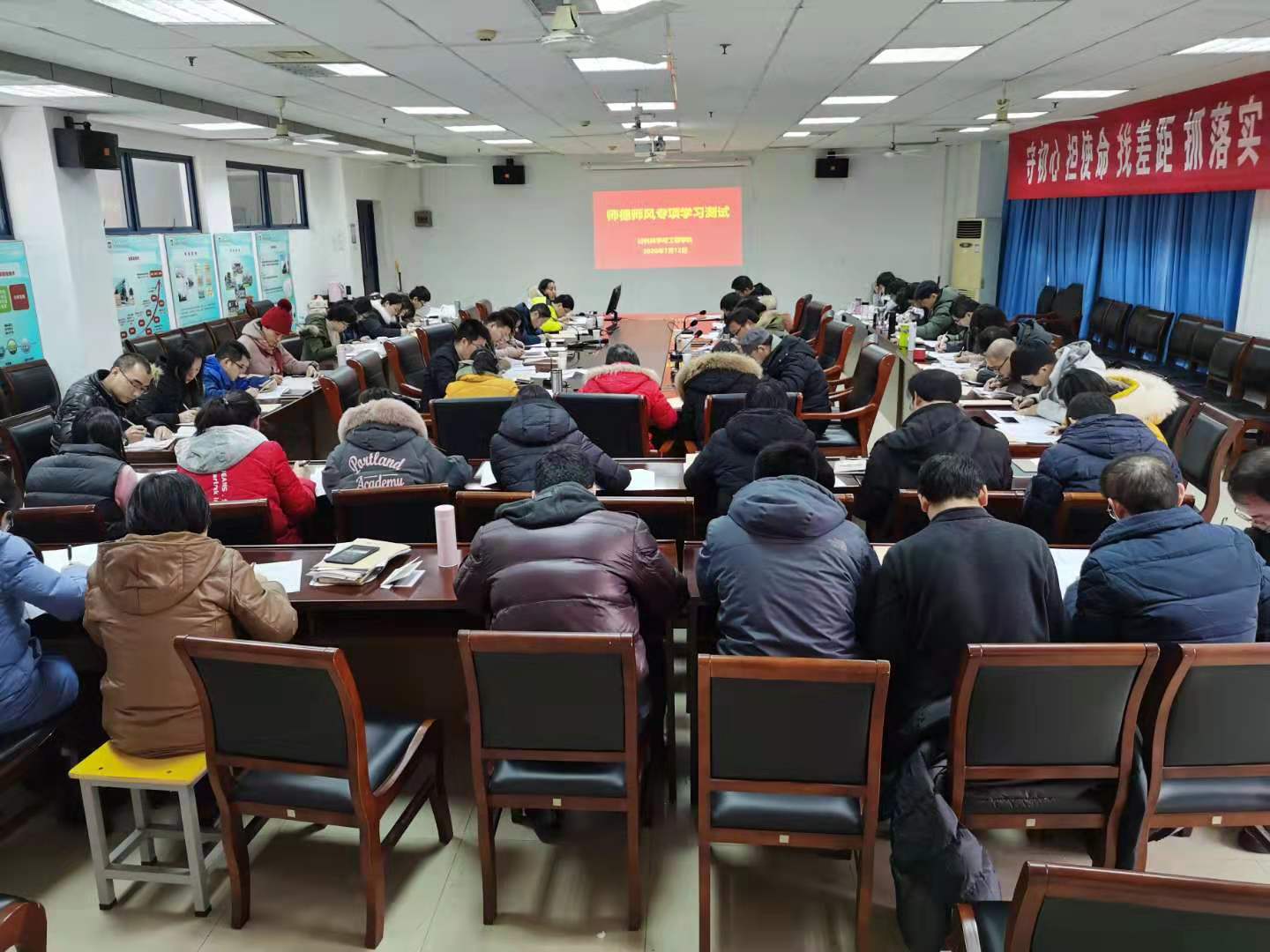 会后,学院组织教师根据《新时代高校教师职业行为十项准则》逐条对照自查,填写《教师年度师德自查情况报告表》,引导所有教职工对师德师风问题知敬畏、存戒惧、守底线,并在会后进行了专项考试,加强学习效果。学院全体教职员工按支部进行了师德师风专项学习考试,考试分设5个考场,考试内容结合教师职业道德规范和《教育部关于高校教师师德失范行为处理的指导意见》《新时代高校教师职业行为准则》《江苏省高校教师师德失范行为处理办法(试行)》《南京邮电大学教职工处分规定》等文件。