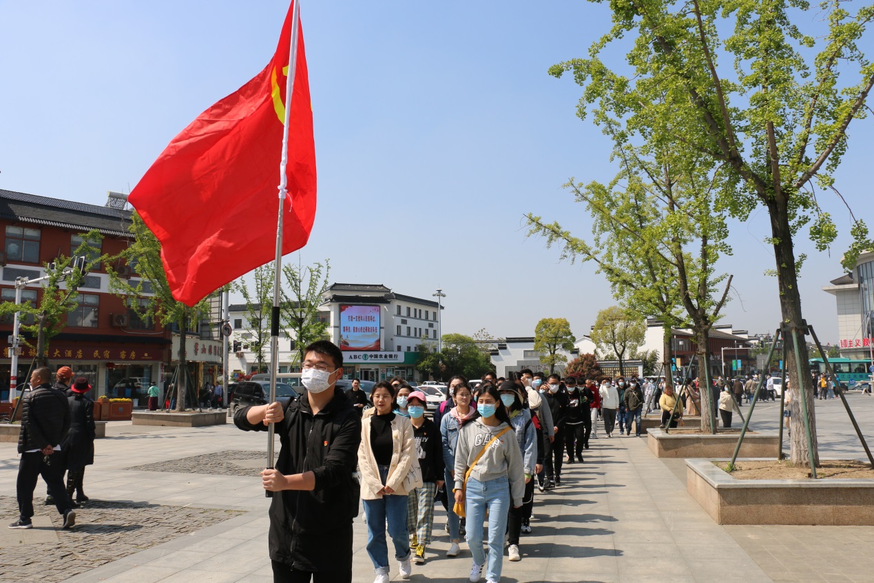 4月10日,太阳城娱乐 组织2021年积极分子培训班全体学员赴茅山新四军纪念馆参观学习。学院党委赵允玉书记、辅导员赵赫男、王森两位老师一同参加了本次活动。