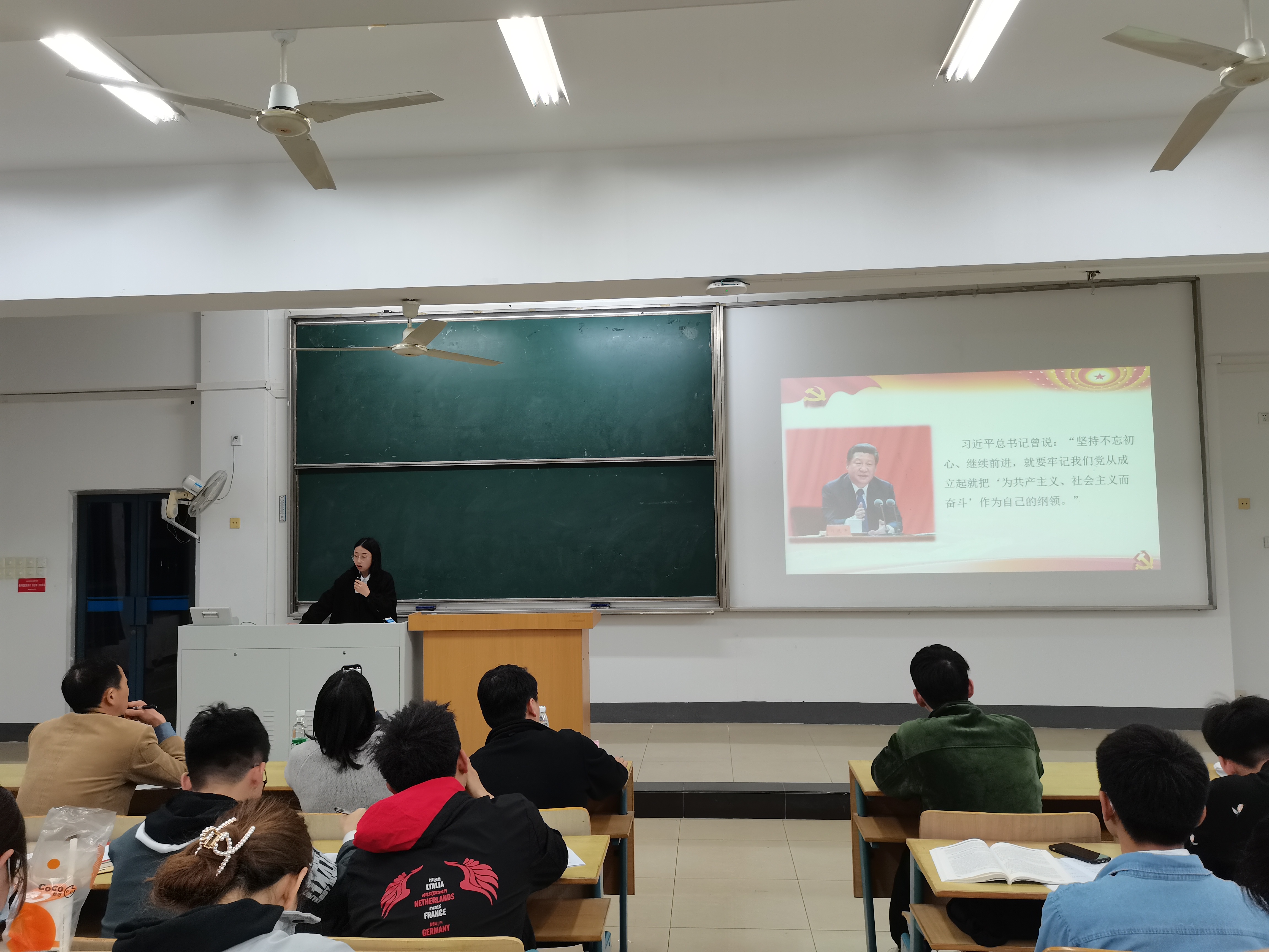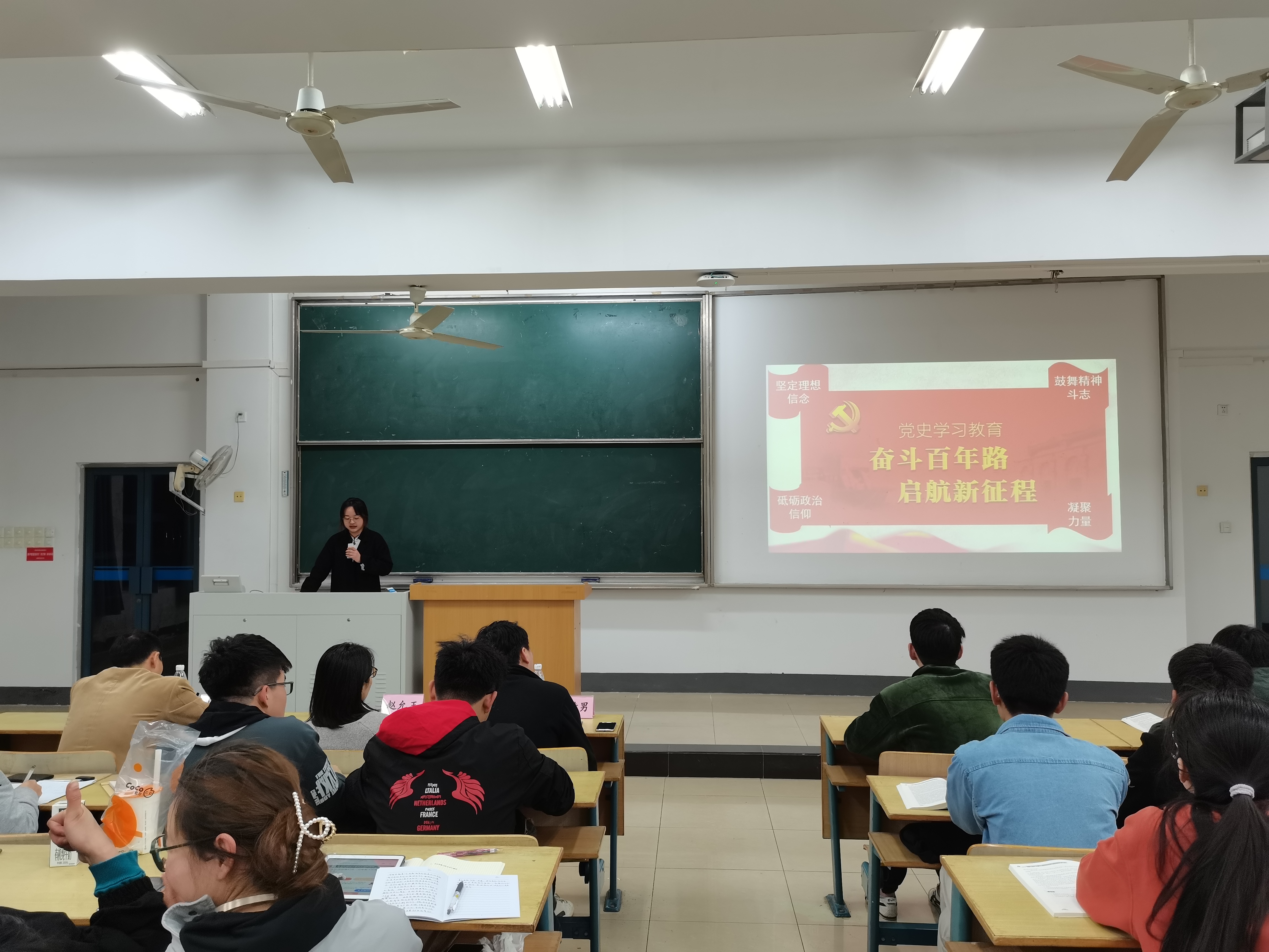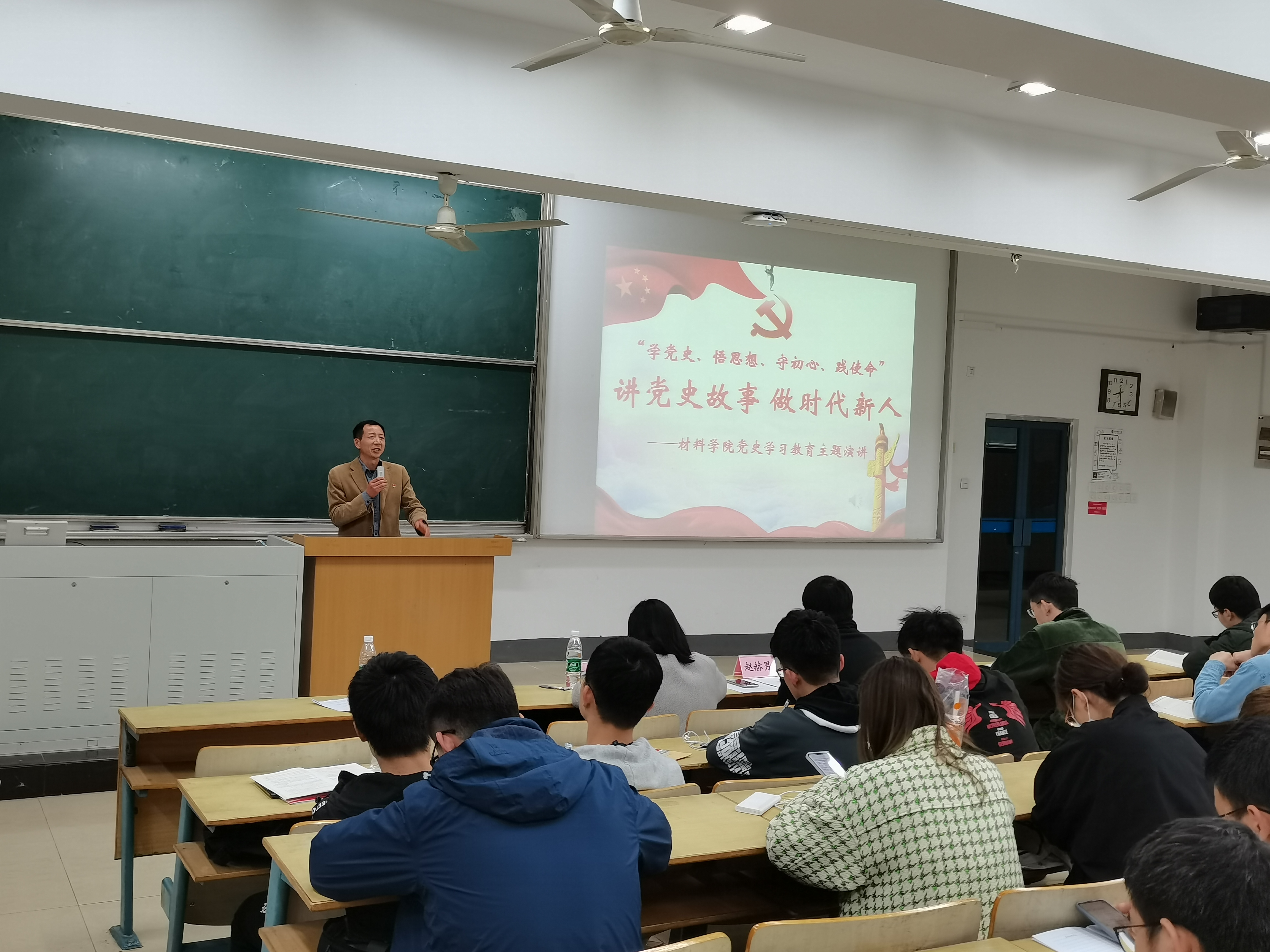 在教4-300举行党史学习教育主题演讲活动,院党委赵允玉书记、张建平副书记,辅导员赵赫男老师及学院第十二期党校全体学员参加了本次活动。