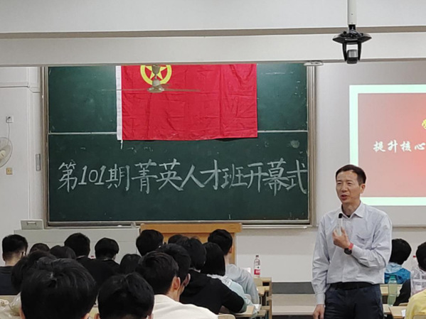 本次菁英班在国歌声中拉开帷幕。赵书记首先为开班仪式致辞,她代表学院党委对本次培训班的顺利开班表示祝贺。赵书记指出,2021年是中国共产党成立100周年,是“十四五”规划开局之年,也是全面建成小康社会、开启全面建设社会主义现代化国家新征程的关键之年,希望学员们能够充分利用这次菁英人才班的学习和实践机会,潜心学习,刻苦钻研,有所收获。同时,赵书记对学员们提出了“人在心在,脚踏实地”,“端正态度,认真学习”,“结合自身,明确目标”的三点希望,切实提高自身的理论知识水平和实践能力。