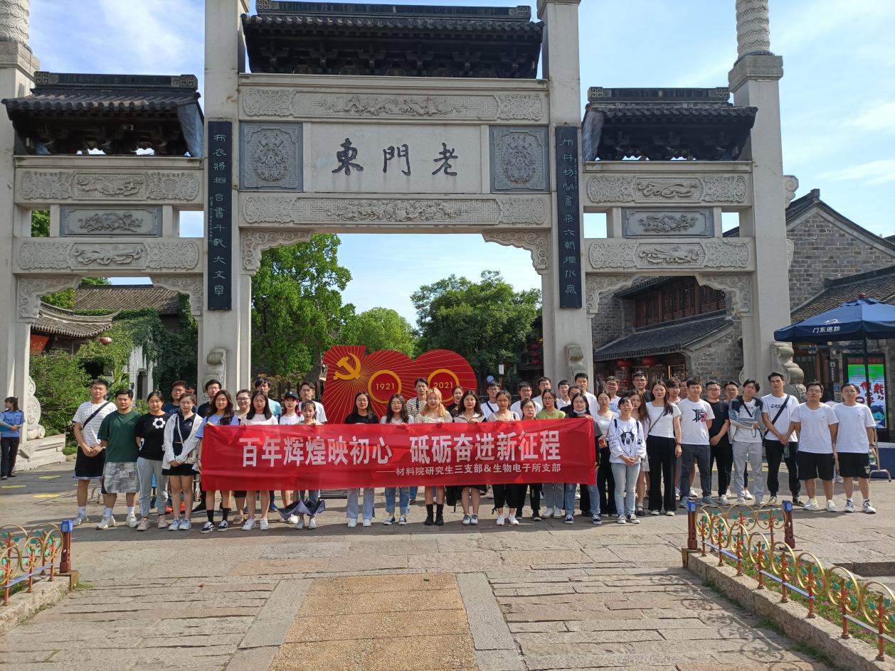 从1921年到2021年,中国共产党走过了整整一百年的历程,百年征程波澜壮阔,百年初心历久弥坚。2021年6月24日,太阳城娱乐 研究生三支部及生物电子所支部全体党员赴老门东小东园参观“‘新青年 心向党——建党100周年 点赞辉煌’江苏省新兴青年群体庆祝建党100周年主题展览”,感受新时代新兴青年群体积极向上的精神风貌,庆祝中国共产党成立100周年,向党的百年华诞献礼。