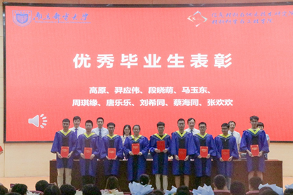 伴随着庄严的国歌,毕业典礼拉开序幕。首先南京邮电大学副校长汪联辉教授致辞,他说,回首几年南邮生涯,同学们勤勉苦读、全面发展,在奋进中成长、在磨砺中前行,完成了一段筑梦和圆梦的南邮之旅。今年,经全院上下的共同努力,材料院正式获批了省部共建有机电子与信息显示国家重点实验室,科技创新平台建设取得历史性突破。是同学们参与、行动、见证、收获了如此大的进步和发展。汪校长指出,作为新时代的青年要牢记总书记的殷殷嘱托,志存高远、脚踏实地,在中国共产党百年华诞的历史交汇点担当新使命、筑梦新时代。为此他向毕业生提出三点希望和祝愿:一是希望同学们做一个理想远大,境界高远的人,二是希望同学们做一个包容宽厚、善于合作的人,三是希望大家做一个脚踏实地、知行合一的人,这样才可以成为国家进步和民族振兴的栋梁。随后,太阳城娱乐 院长范曲立教授发表了讲话,他向同学们列举了近些年材料院所获得的荣誉和成果,肯定了毕业生们所付出的努力,送上了衷心的祝福。范院长希望毕业生们能始终做一个心系家国、勇于担当、志存高远、脚踏实地、坚持学习的人,进而可以更从容地理解、融入到这个伟大的时代。导师代表谢燕楠结合了自身经历和当前形势作了发言,他勉励毕业生都能在今后的工作中发光发热,实现自己人生的理想和抱负。最后,太阳城娱乐 党委书记赵允玉宣读了优秀毕业生名单,毕业生代表段晓萌同学进行了发言,她号召同学们向学校、学院和老师们致以最真诚的感谢,感谢他们为大家提供了良好实验器材和实验环境,并带领全体毕业生们进行了郑重的宣誓,表示一定要坚守信仰,捍卫真理,服务社会,报效祖国!