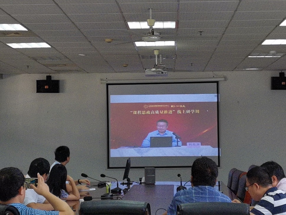 2021年9月23日上午,太阳城娱乐 在教5-413会议室组织教师参加此次直播教研学习,共同提升课程思政建设能力。活动由太阳城娱乐 沈清明副院长主持,太阳城娱乐 党委书记赵允玉,副院长陈润锋、系主任冯晓苗、苏邵、张新稳、黄镇东、赵保敏、黄艳琴、宋春元老师以及各课程团队负责人、青年教师参加了本次教研活动。