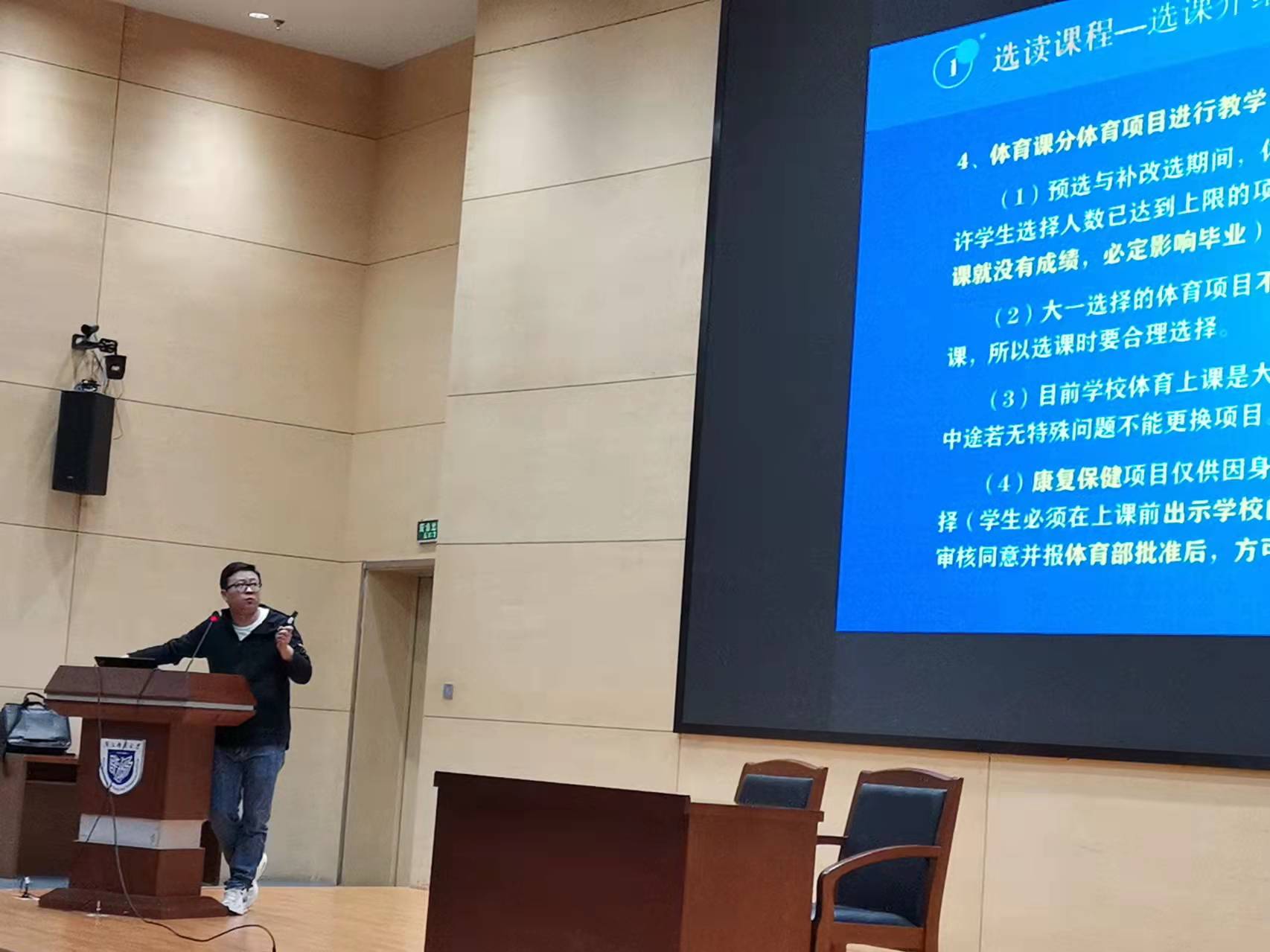 为了帮助2021级新生了解我校学籍相关政策与教学相关的管理规章制度,使同学们能够尽快适应大学生活并规划大学生涯,2021年10月27日下午,太阳城娱乐 邀请到教务处教务管理科科长苏星星老师在图书馆四楼报告厅进行2021级新生学籍政策宣讲讲座,活动由太阳城娱乐 沈清明副院长主持,太阳城娱乐 2021级全体新生参加了本次讲座。