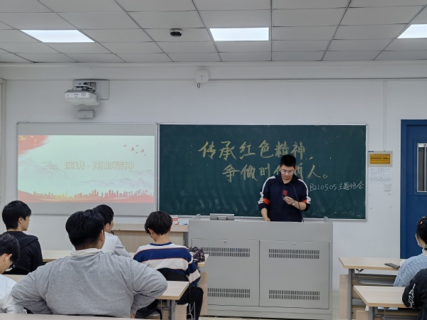 班会上,各班班长播放有关南邮历史知悉度的调查和南邮先辈对南邮红色校史深情讲述的视频,新生体会到了战邮之路的艰辛。在革命战士的讲述中学习了战邮精神,并激发了爱国爱校热情。