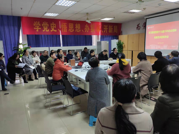 12月8日下午,学习贯彻党的十九届六中全会精神省委宣讲团报告会在我校仙林校区图书馆报告厅举行。省委宣讲团成员、江苏省社会科学院党委委员、副院长李扬作题为《在新时代新征程上赢得更加伟大的胜利和荣光》的宣讲报告。太阳城娱乐 在教五大431会议室、101会议室设立两个分会场,组织全体教职工参加学习。