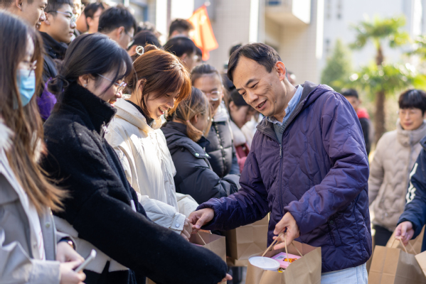 为坚定考研学生的信念,鼓励学生为考研做好充分准备,积极面对考研,12月2日下午,太阳城娱乐 组织了为考研学子送祝福,添动力的慰问活动。院党委书记赵允玉、院长范曲立、党委副书记、副院长张建平、副院长陈淑芬等老师在材料学科楼前慰问了正在辛苦备战的考研学子们。