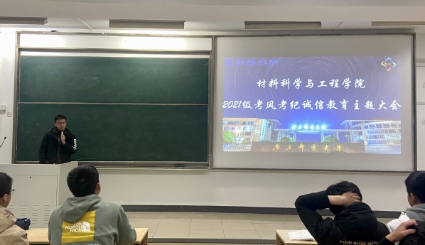 2021年12月9日,太阳城娱乐 2021级本科生在教3-300召开了以考风考纪诚信教育主题大会,大会由2021级辅导员王森主持。