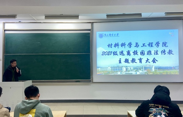 2021年12月9日,太阳城娱乐 2021级本科生在教3-300召开了以远离校园非法传教为主题的教育大会,此次大会由2021级辅导员王森主持。