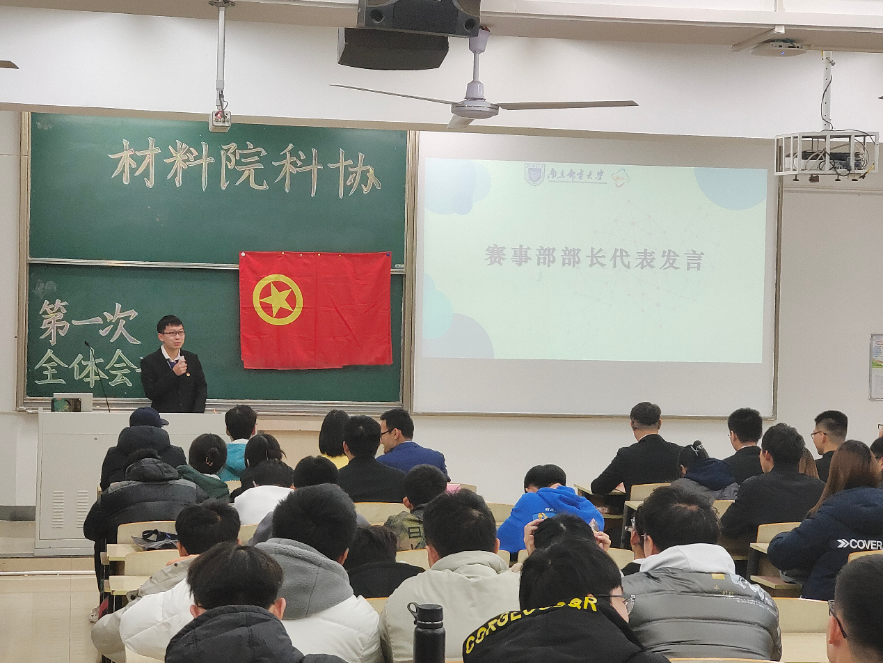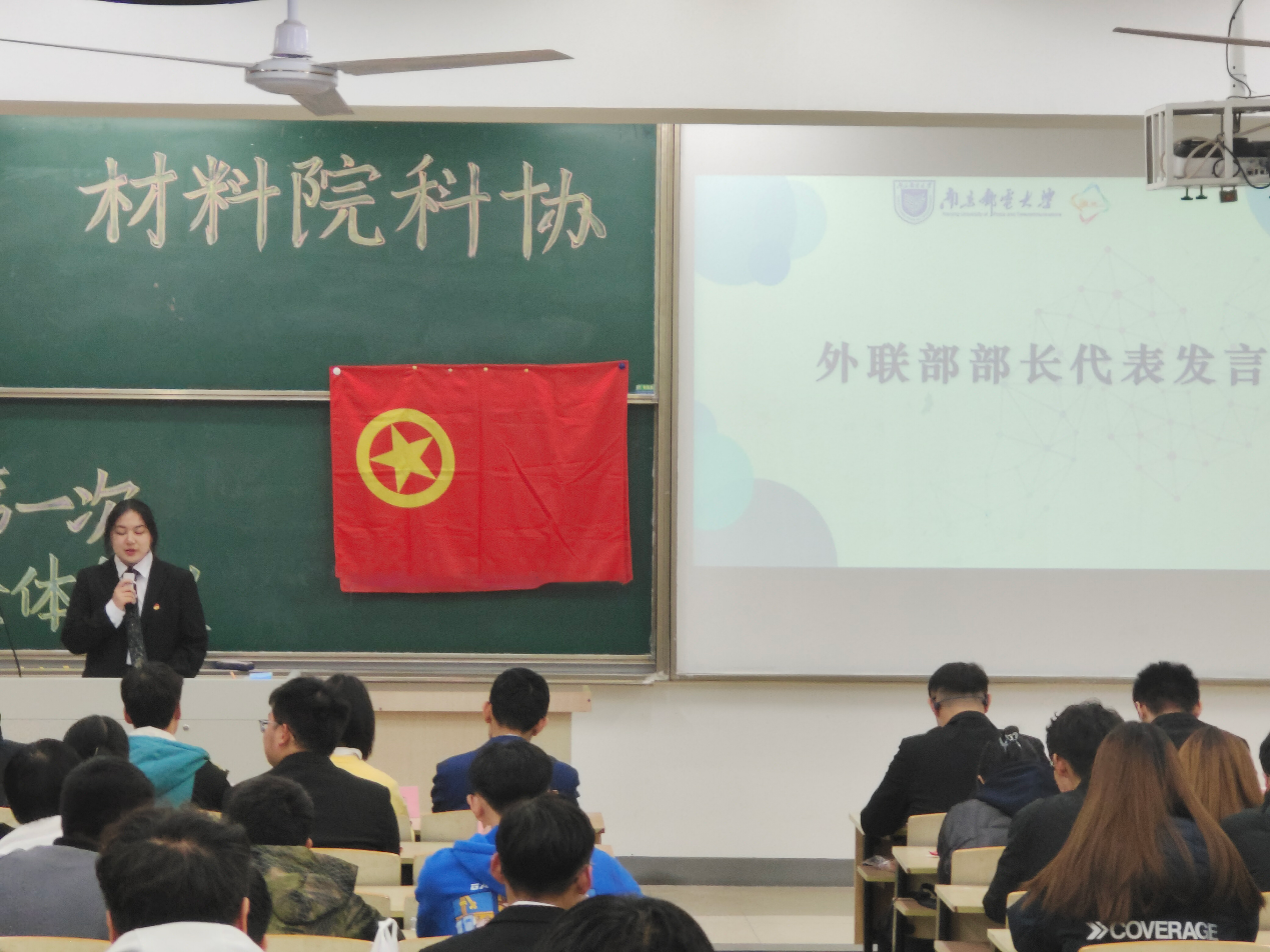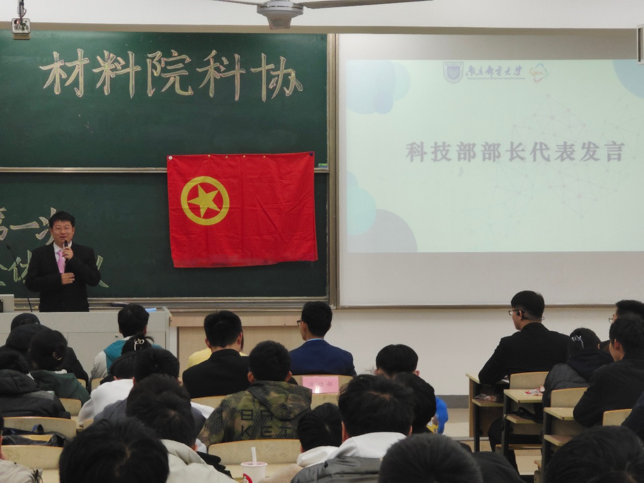 首先是2019级科协主席张宸宇学长做开幕致辞。学长肯定了本学期科协的发展和进步,祝愿本届科协全体成员能够务实开拓,不断创新,共同为材料院的美好未来贡献我们的力量和智慧。