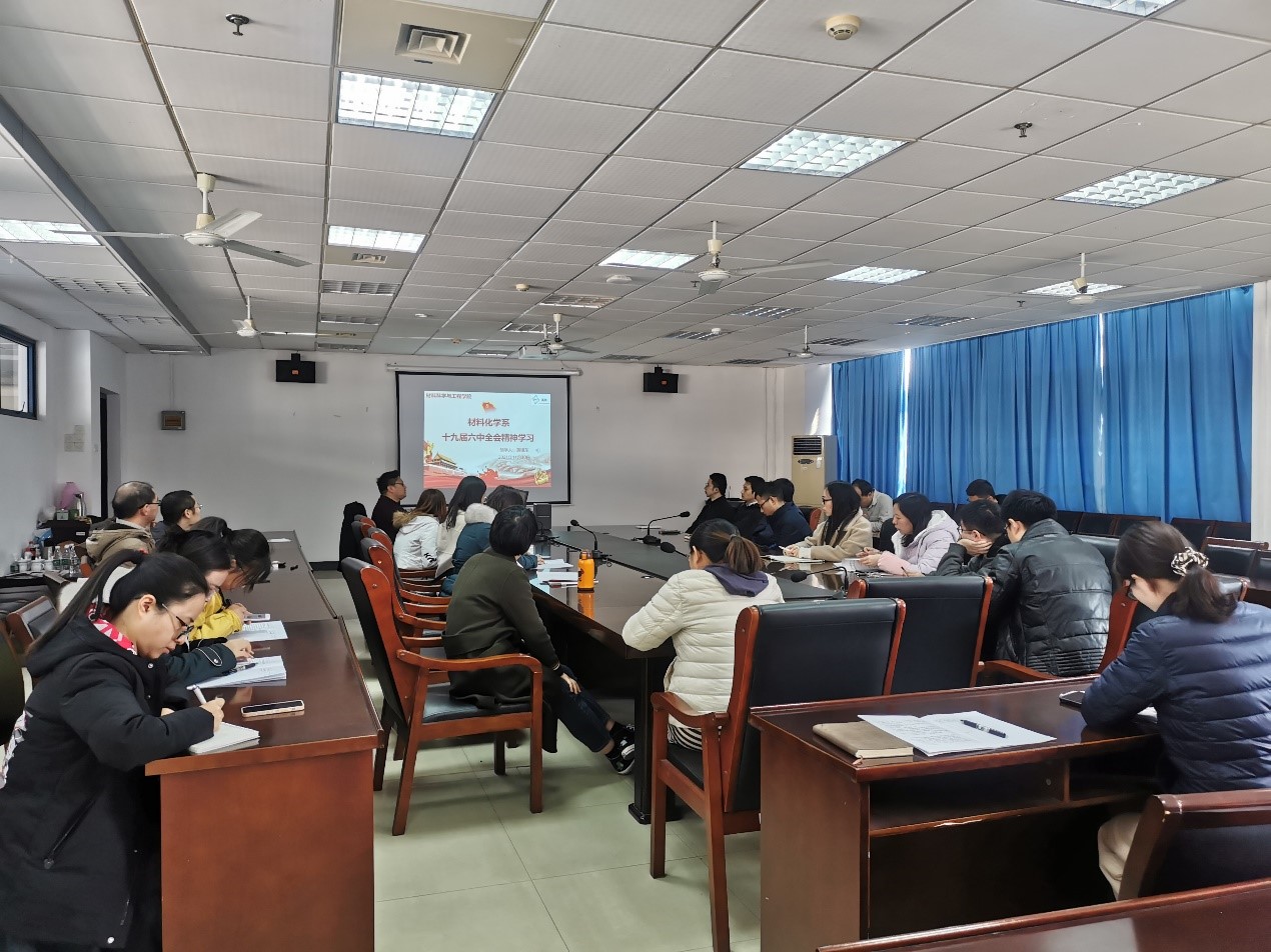 最后黄镇东书记强调要把学习宣传贯彻党的十九届六中全会精神作为当前重要任务,结合开展党史学习教育,组织线下线上党史学习教育,引导教师们深刻学习领会党的十九届六中全会的现实意义和历史意义,并勉励教师们要把所学所悟转化成为积极为党和国家培养具有材料专长的德智体美劳全面发展的社会主义建设者和接班人的动力。