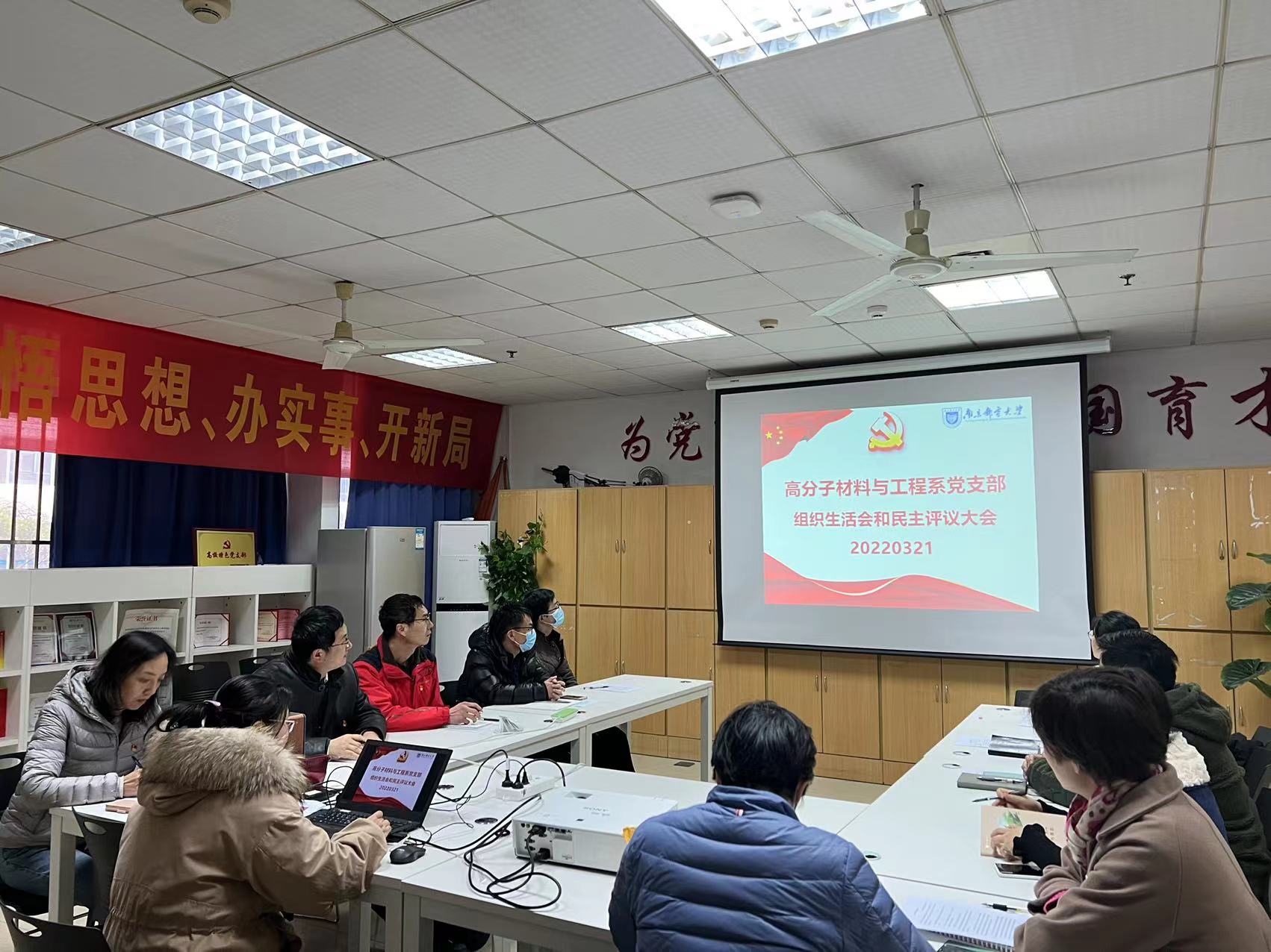 为严格执行党的组织生活制度,深入学习贯彻习近平新时代中国特色社会主义思想,太阳城娱乐 高分子材料与工程系党支部于2022年3月21日组织全体党员召开组织生活会和民主评议党员大会,通过开展党性分析,交流学习体会,引导党员进一步深刻领会开展党史学习教育的重大意义,大力弘扬伟大建党精神,坚持自我革命,结合自身实际查找差距不足。