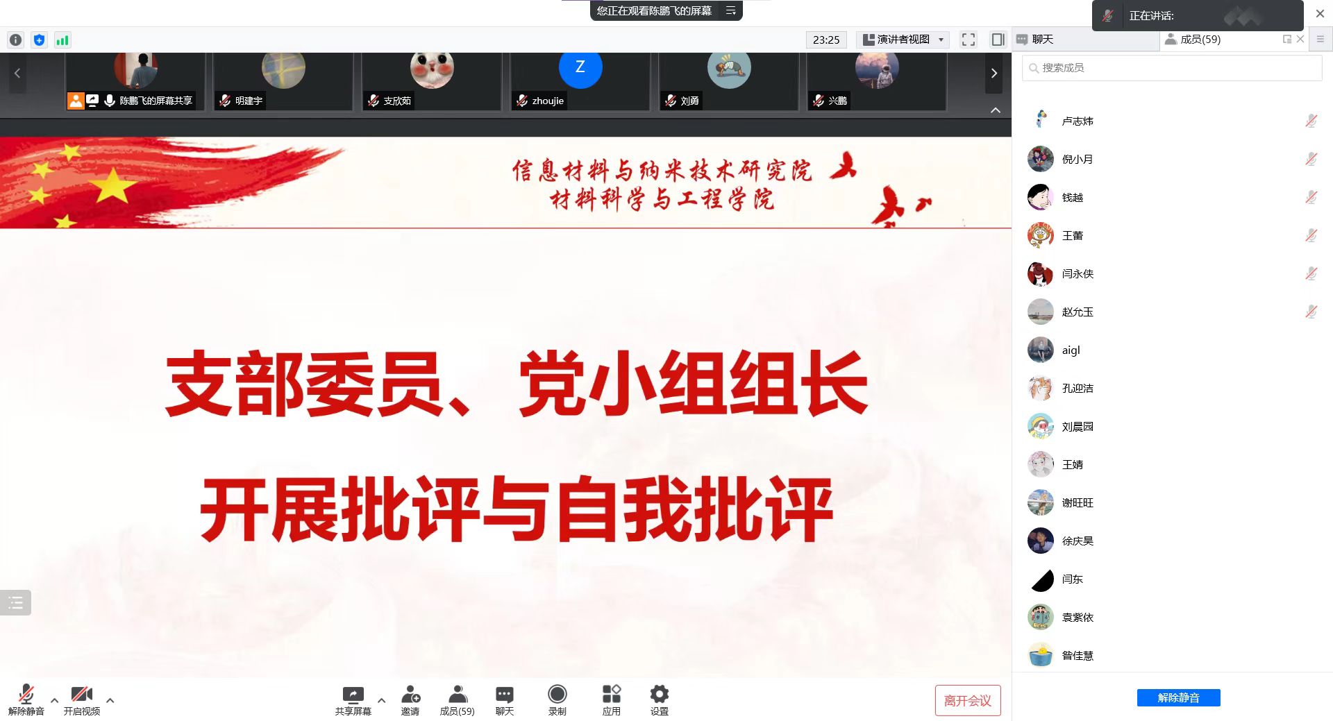 按照学校《关于召开2021年度南京邮电大学基层党组织组织生活会和开展民主评议党员的通知》文件要求,3月17日下午,太阳城娱乐 研究生一支部召开2021年度组织生活会,本次组织生活会由党支部书记陈鹏飞主持,研究生一支部全体党员参与本次会议,学院党委赵允玉书记全程参会指导。按照学校防疫工作要求,本次组织生活会采取线上线下相结合的方式召开。