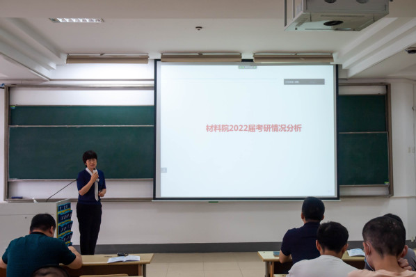 王霁主任根据近几年的考研数据,从招生的角度分析了当前的考研报考及招录形势,详细介绍了材料院专业学生的报考情况,讲解考研相关政策,为同学们梳理了考研备考过程的各时间节点,解答了同学们的相关问题。