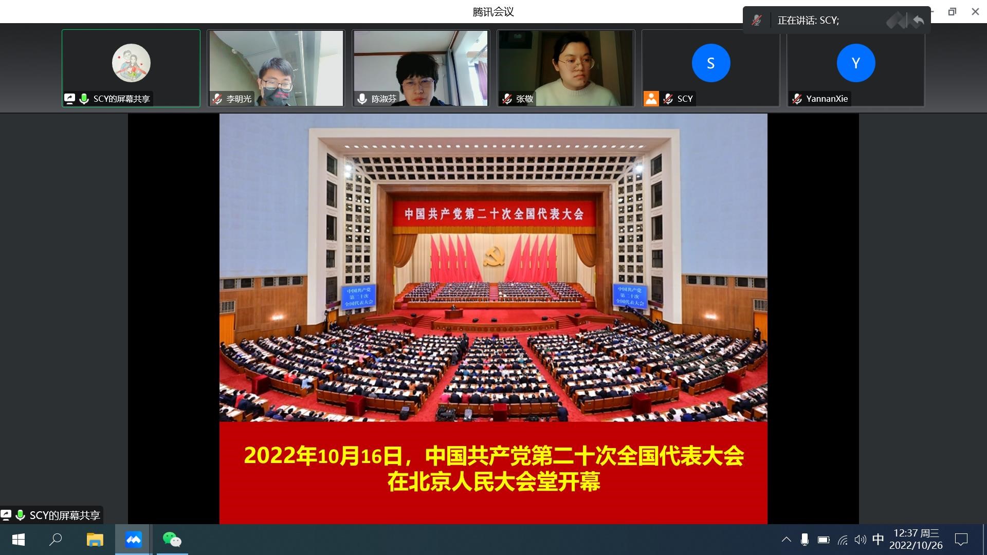 为深入学习贯彻中国共产党第二十次全国代表大会精神,2022年10月26日,材料物理系党支部召开线上会议,开展“学习党的二十大精神,践行科教兴国使命”主题党课学习活动,支部全体党员参加学习。