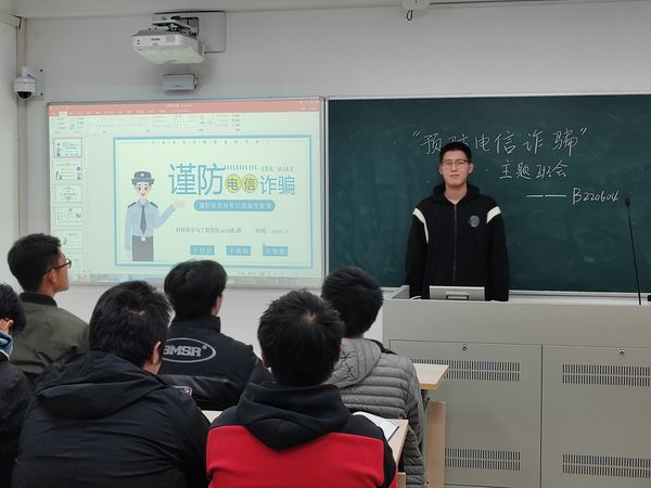 B220602张驰同学提出:近年来,随着信息技术的迅速发展和网络平台的不断涌现,电信诈骗手段和形式也开始呈现出多样化趋势,许多在校大学生由于缺乏相关知识而跌入陷阱、蒙受损失,新型的犯罪手段更是层出不穷,电信诈骗的案例屡见不鲜,诈骗手段防不胜防。对此,精心地策划并开展了此次班会活动,旨在进一步让同学们了解反电信的基本知识、处置方式和诈骗带来的巨大危害,提升大学生的安全防范意识,使同学们能够在平时的学习工作及生活中不受诈骗分子的欺骗,保护好自己的财产安全,使同学们面对诈骗能够安全应对,共同营造出一个安全和谐美好的绿色校园。