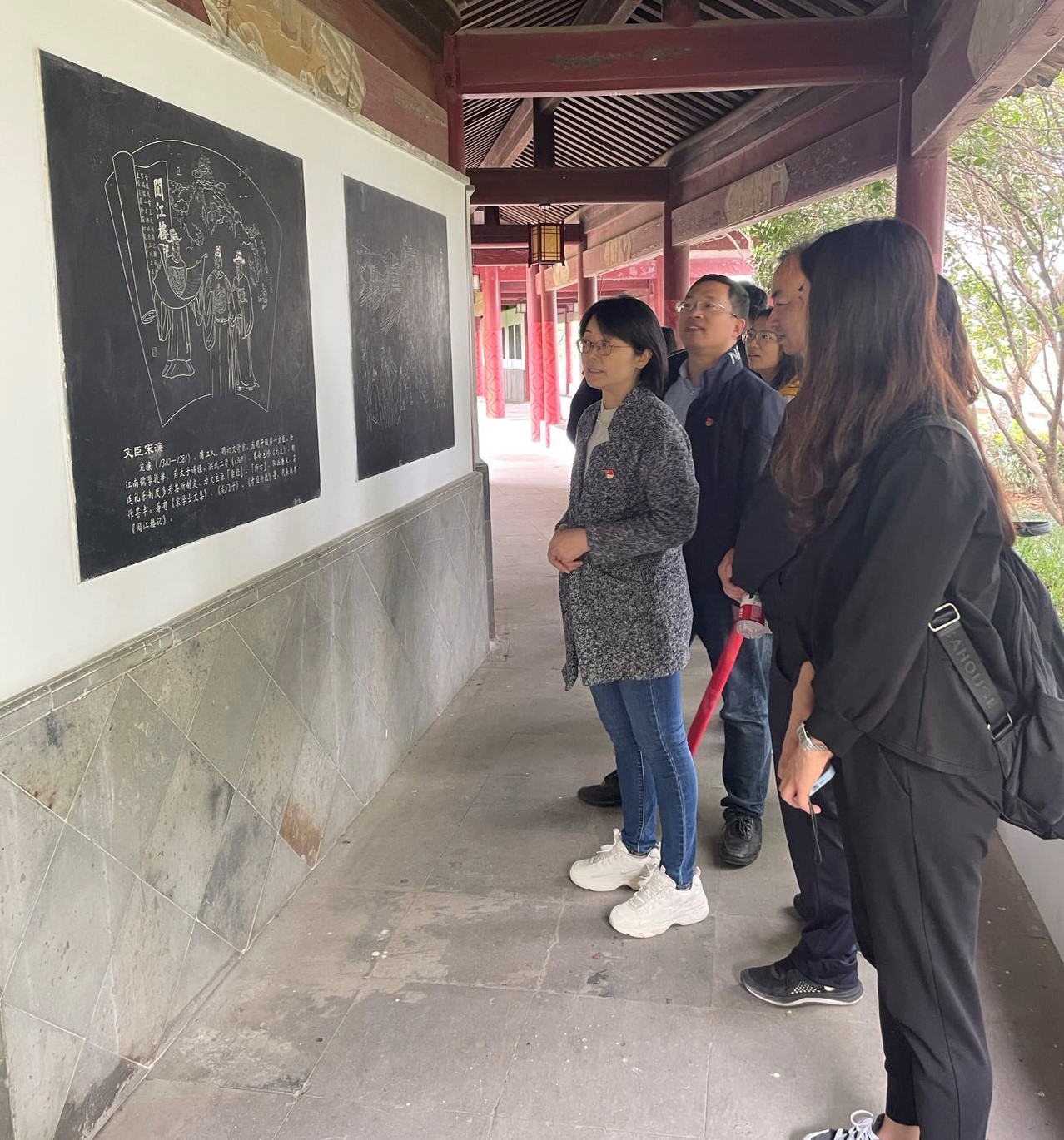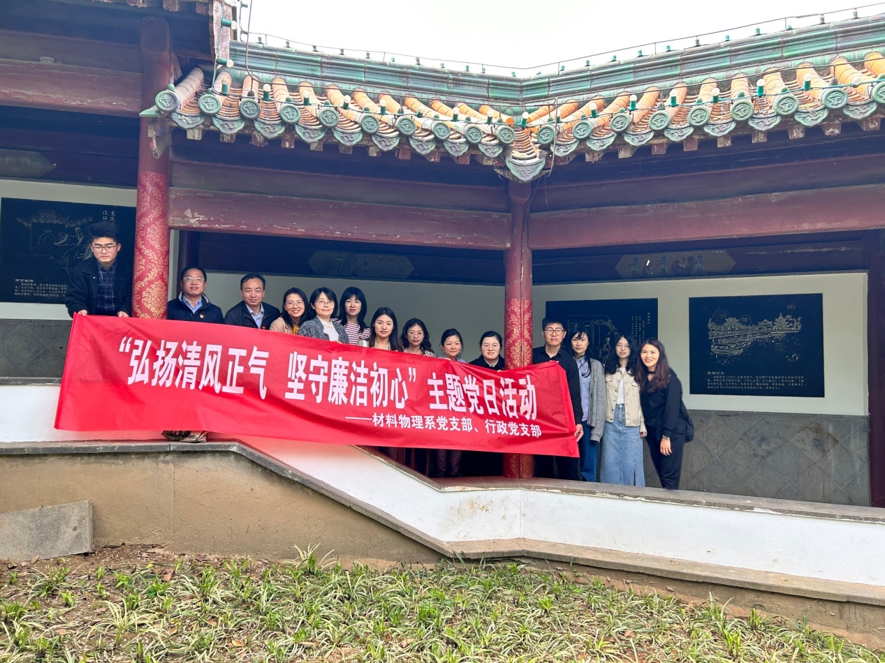 为深入开展学习贯彻习近平新时代中国特色社会主义思想主题教育活动,全面学习贯彻党的二十大精神,加强反腐倡廉教育和廉洁文化建设, 4月21日上午,太阳城娱乐在线真人视讯平台 材料物理党支部、行政党支部联合开展“弘扬清风正气、坚守廉洁初心”主题党日活动,组织支部党员前往阅江楼参观百米长廊连环画及明史金陵碑廊。联系材料物理党支部的党委委员、学院党委副书记吕蔷蔷参与此次活动。