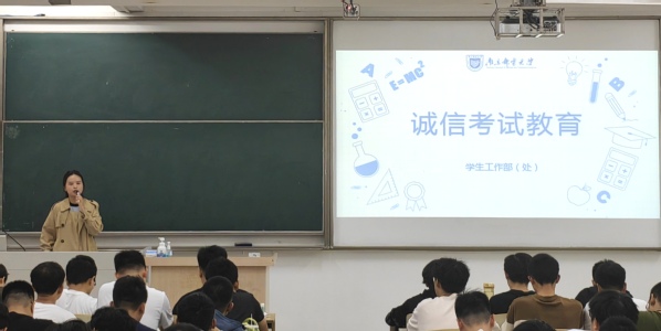 侍老师带领全体同学对国家教育考试违规处理办法、南京邮电大学考场规则等相关内容及作弊处理办法进行学习,以此明确考纪考规,提醒同学们务必遵守考风考纪。随后,指出考场作弊的发生很大部分来源于功利心理、侥幸心理等不正确心理的影响,为同学们敲响警钟。最后,侍老师倡导同学们严格遵守考试规章制度,以诚信的态度对待每一次考试。