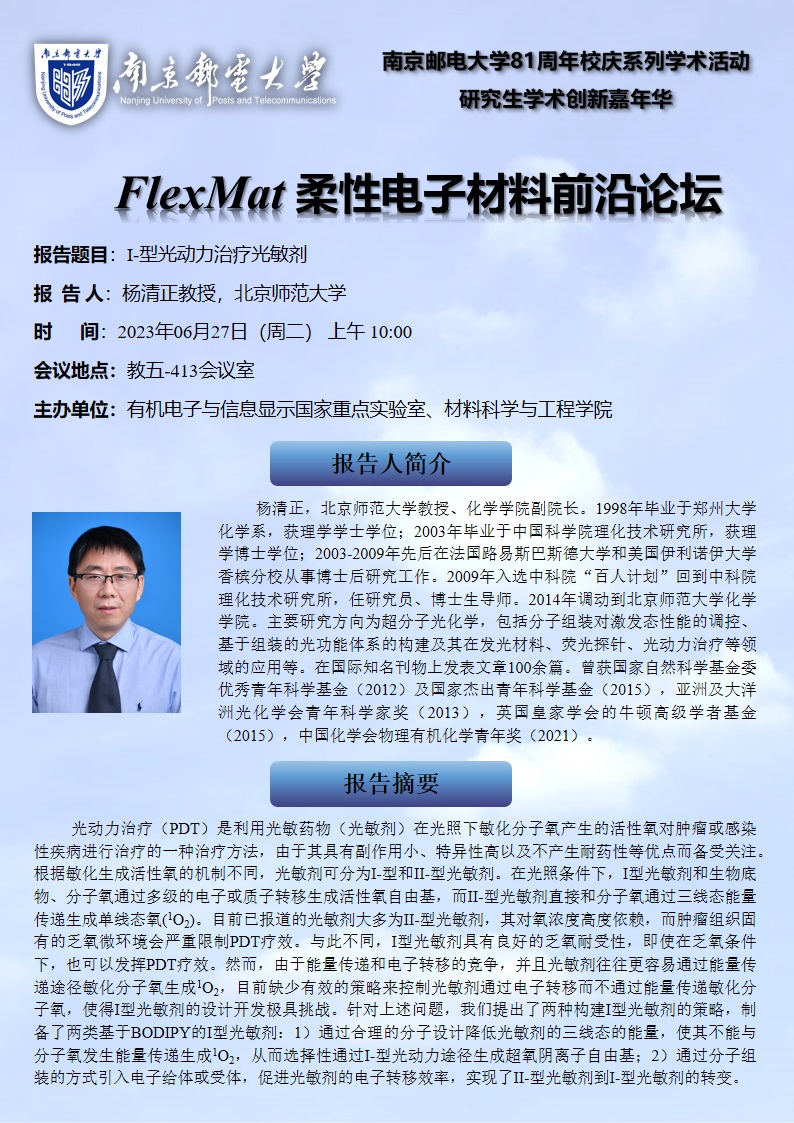 FlexMat柔性电子材料前沿论坛: 北京师范大学 杨清正教授