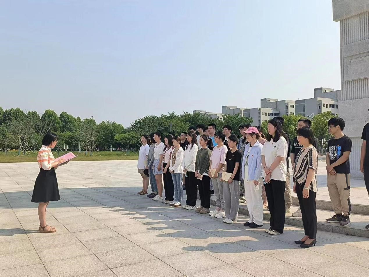 2023年6月15日,太阳城娱乐 学工支部在战邮广场召开支部主题党日活动,为转正党员过第一次政治生日,为新发展党员佩戴党徽,开展全体党员入党宣誓的思政教育及毕业生党员廉洁文化教育。学院党委书记赵允玉,党委副书记、副院长吕蔷蔷以及学工支部全体党员参加本次大会。