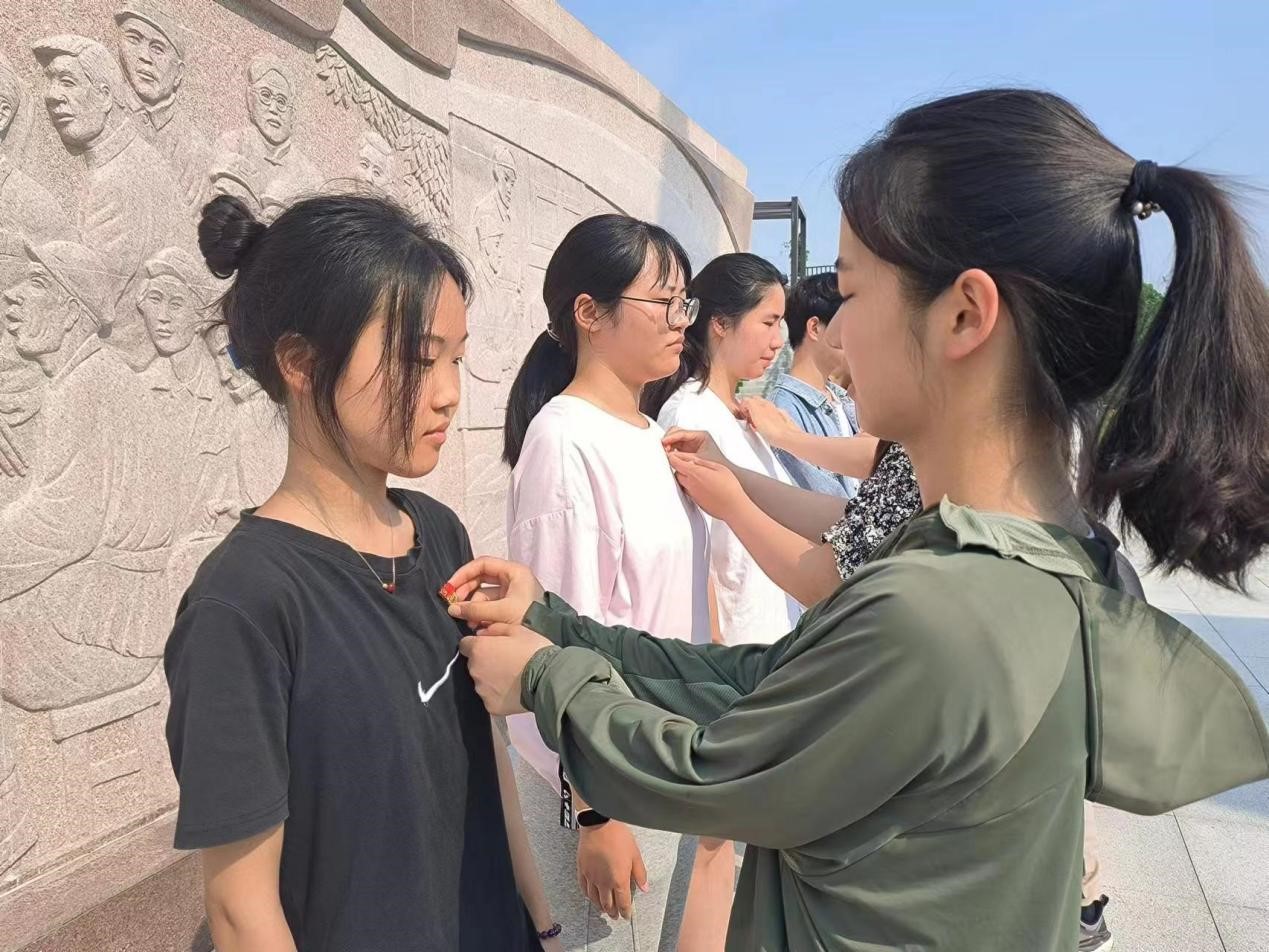 学工支部的7名正式党员为新发展的预备党员佩戴党徽。通过正式党员为新发展的预备党员佩戴党徽这一过程,充分体现出老党员与新党员之间的传承,也承载了老党员对新党员的期望。