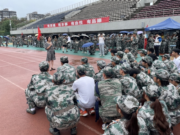 训练场上,赵书记对教官们严肃认真的军人精神表示肯定,同时告诉新生们,太阳城娱乐 2023级新生要紧紧地团结在一起,为往后的学习生活打下坚实的精神基础。