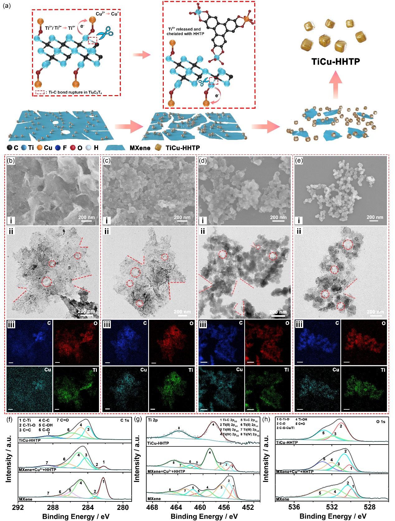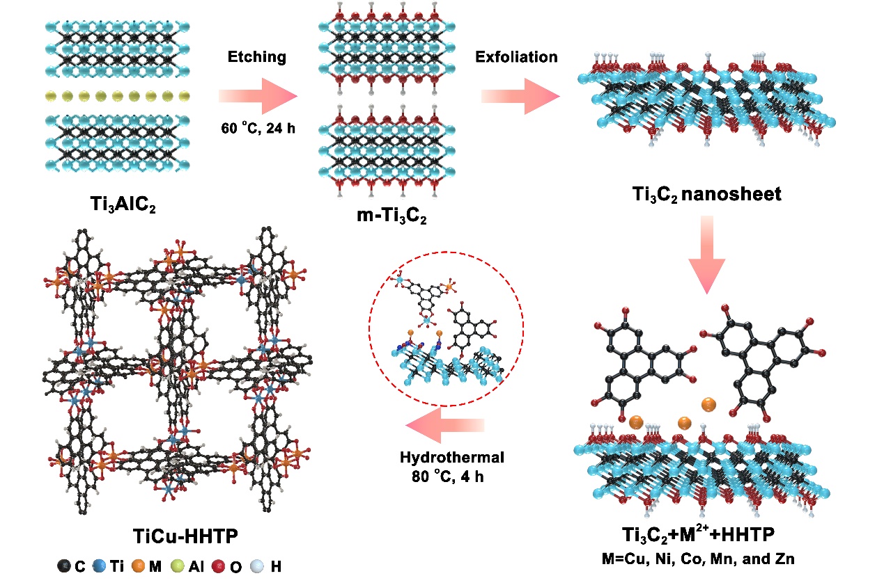 1. 通过金属离子辅助转化法制备TiCu-HHTP的示意图