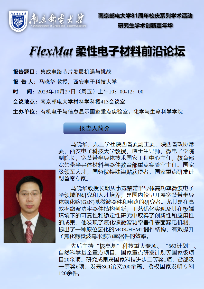 FlexMat柔性电子材料前沿论坛: 西安电子科技大学 马晓华教授