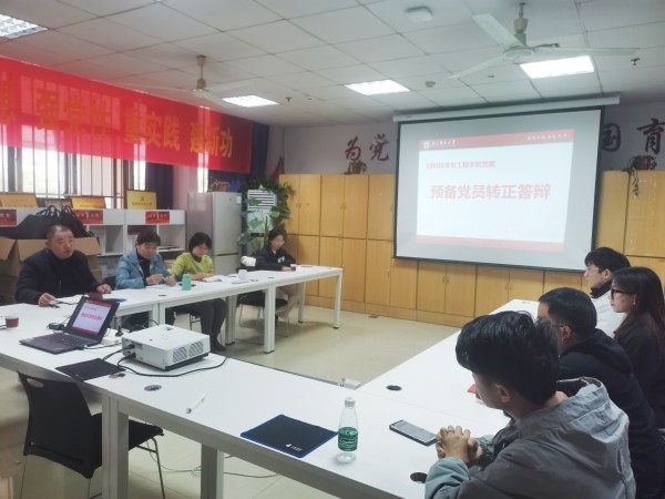 此次转正答辩大会由个人陈述、现场问答、现场评议三个环节组成。10位预备党员依次从思想、学习、工作、生活方面汇报了预备期间的情况,并对不足之处进行了认真总结。答辩评议小组成员围绕答辩内容对预备党员提出有关党员先锋模范作用的发挥、党员政治学习等提问,各位预备党员现场作答。其中博士支部的韦传新表示,从递交入党申请书开始,积极向党组织靠拢,参加支部各项政治学习,发挥党员先锋模范作用。学工支部的吴思齐一直担任学生干部工作,在班级管理和学科竞赛中均取得了不错的成绩,在今后的工作和学习中,以实际行动践行全心全意为人民服务的宗旨。之后答辩小组成员对答辩人的表现、进行现场评议。