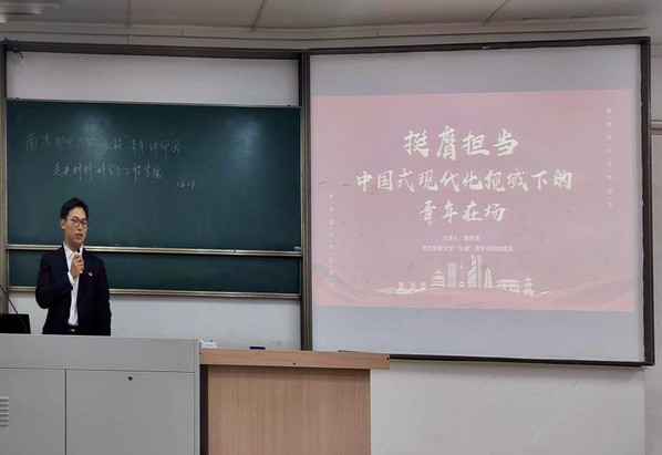 为深入学习贯彻党的二十大精神,贯彻落实习近平新时代中国特色社会主义思想,营造凝心聚力、团结奋斗的良好氛围,强化青年思想政治引领,凝聚民族复兴青春力量。2023年12月14日晚, 太阳城娱乐 邀请校“弘毅”青年讲师团的三位同学为太阳城娱乐在线真人视讯平台 大一学生开展专题宣讲课。宣讲主题分别为“铆足实干劲头,使命扛在肩”,“挺膺担当·中国式现代化视域下的青年在场”,“青春之花,向阳生长”。宣讲会由学院青年学习社徐扬同学主持。